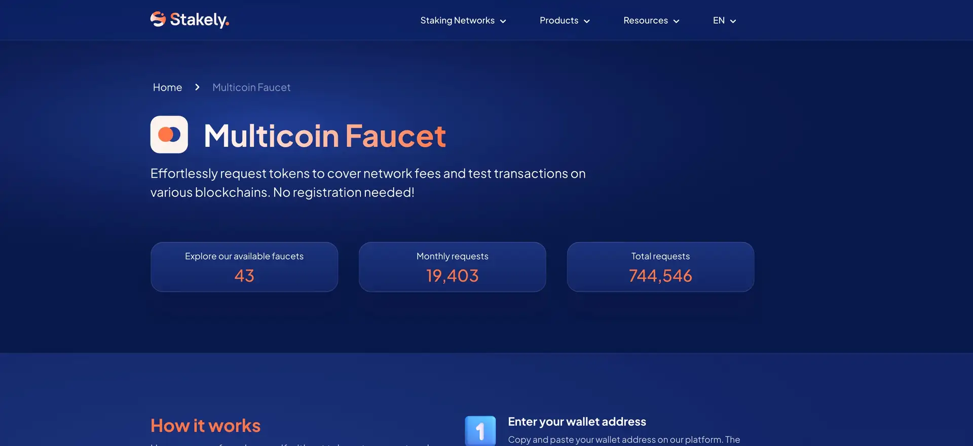 Stakely.io’s competitors include other faucet services like FaucetCrypto, which also provides access to free tokens for testing purposes. However, Stakely.io distinguishes itself through its extensive support for multiple blockchains and its focus on providing a seamless user experience. This makes it particularly valuable for developers working on complex, multi-chain projects who need reliable and consistent access to test tokens.