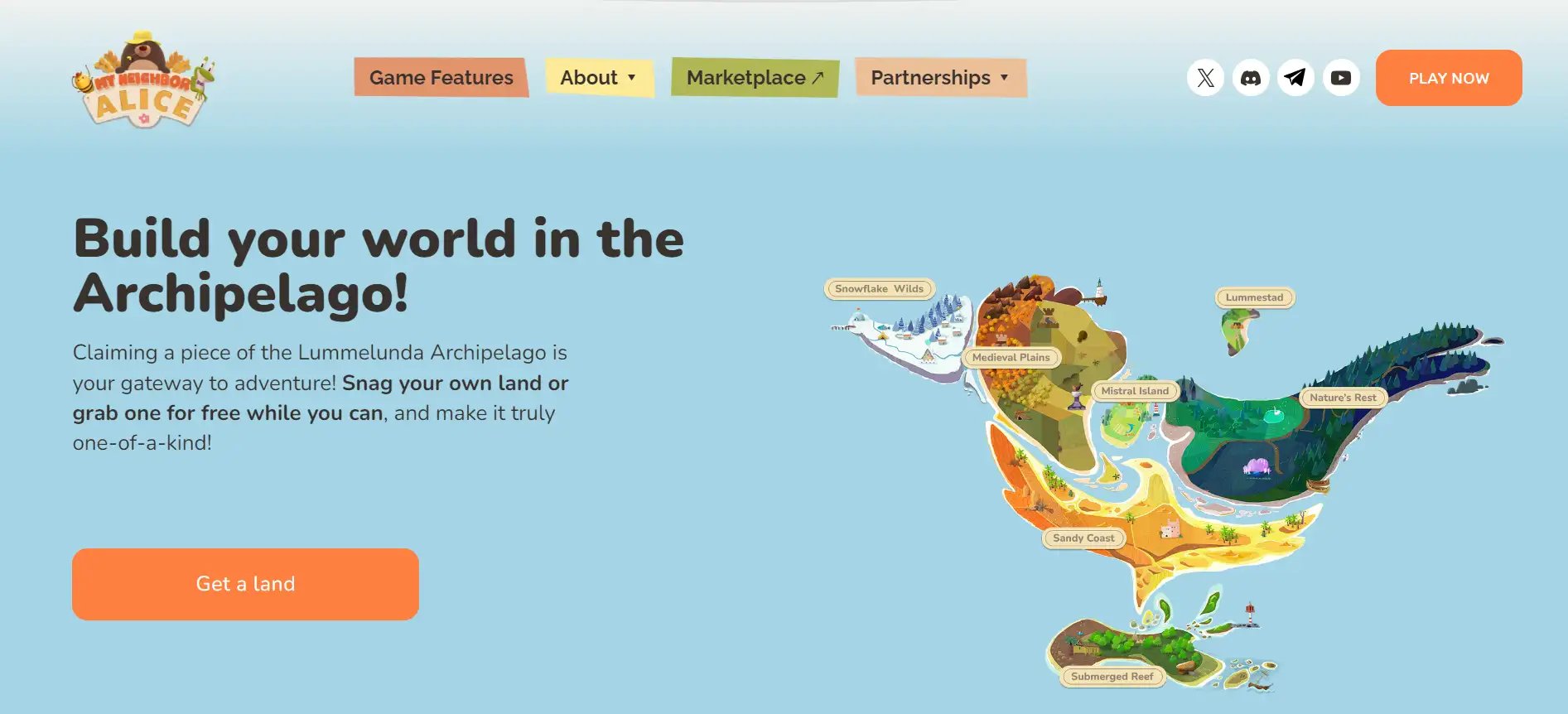 In My Neighbor Alice, land ownership is based on NFT technology, meaning each land parcel is a unique, tradeable asset. Players can customize their land with crops, buildings, and decorations, making it valuable in both gameplay and the marketplace. Since land is limited, its value can increase over time, especially as more players join the ecosystem. My Neighbor Alice also introduces scarcity-based mechanics, making rare plots highly sought after.