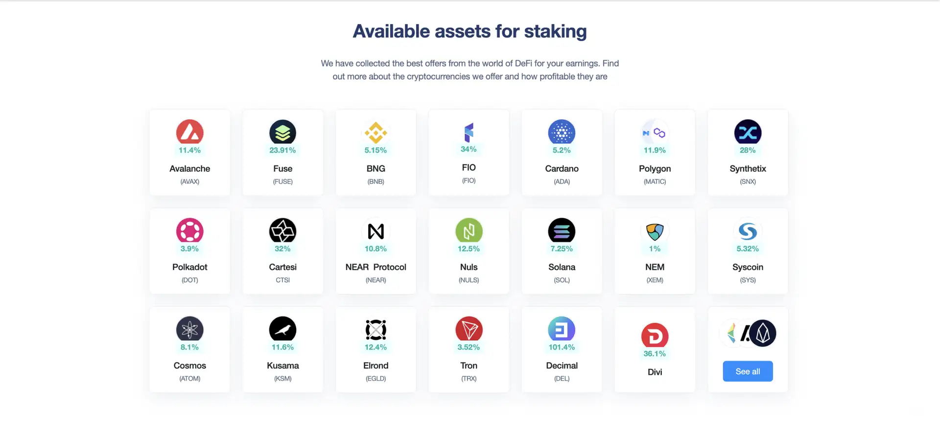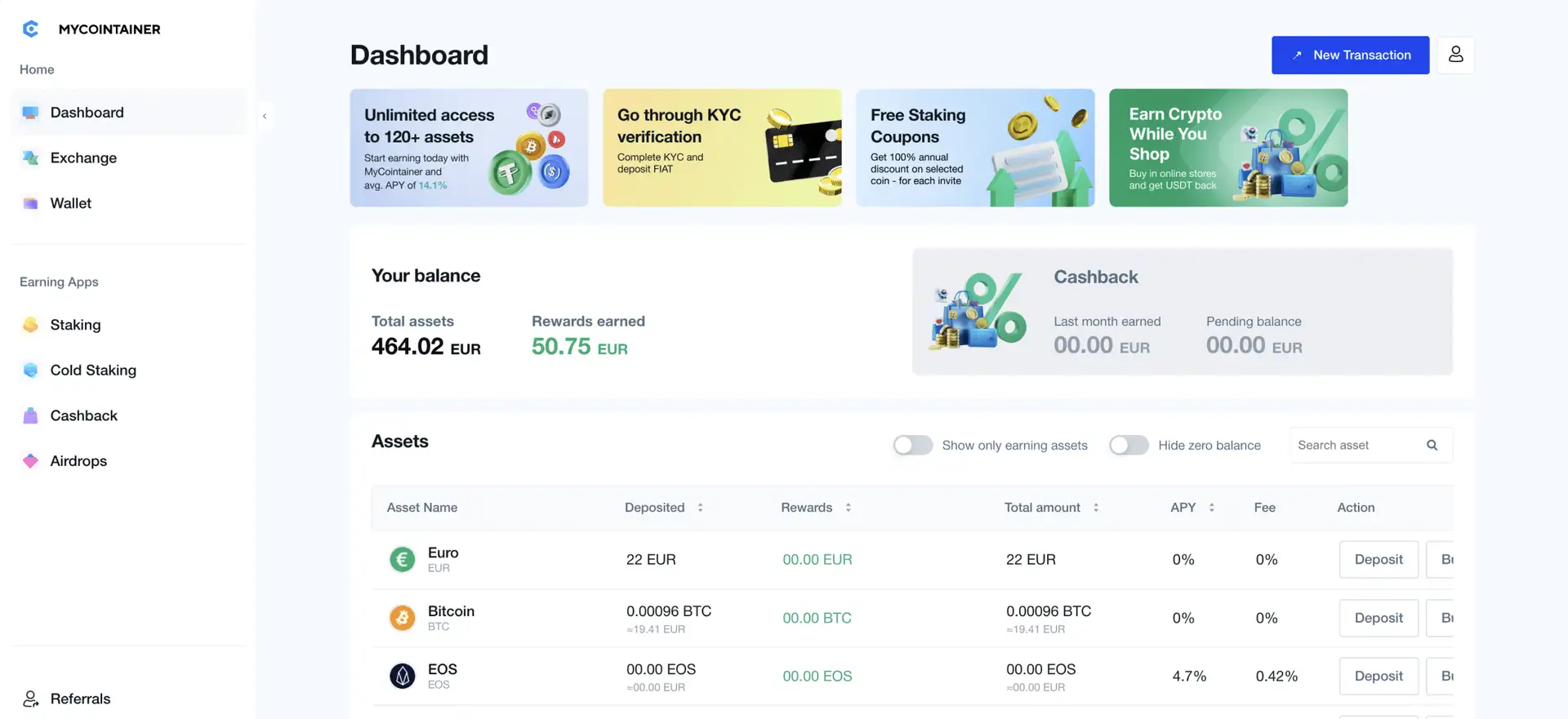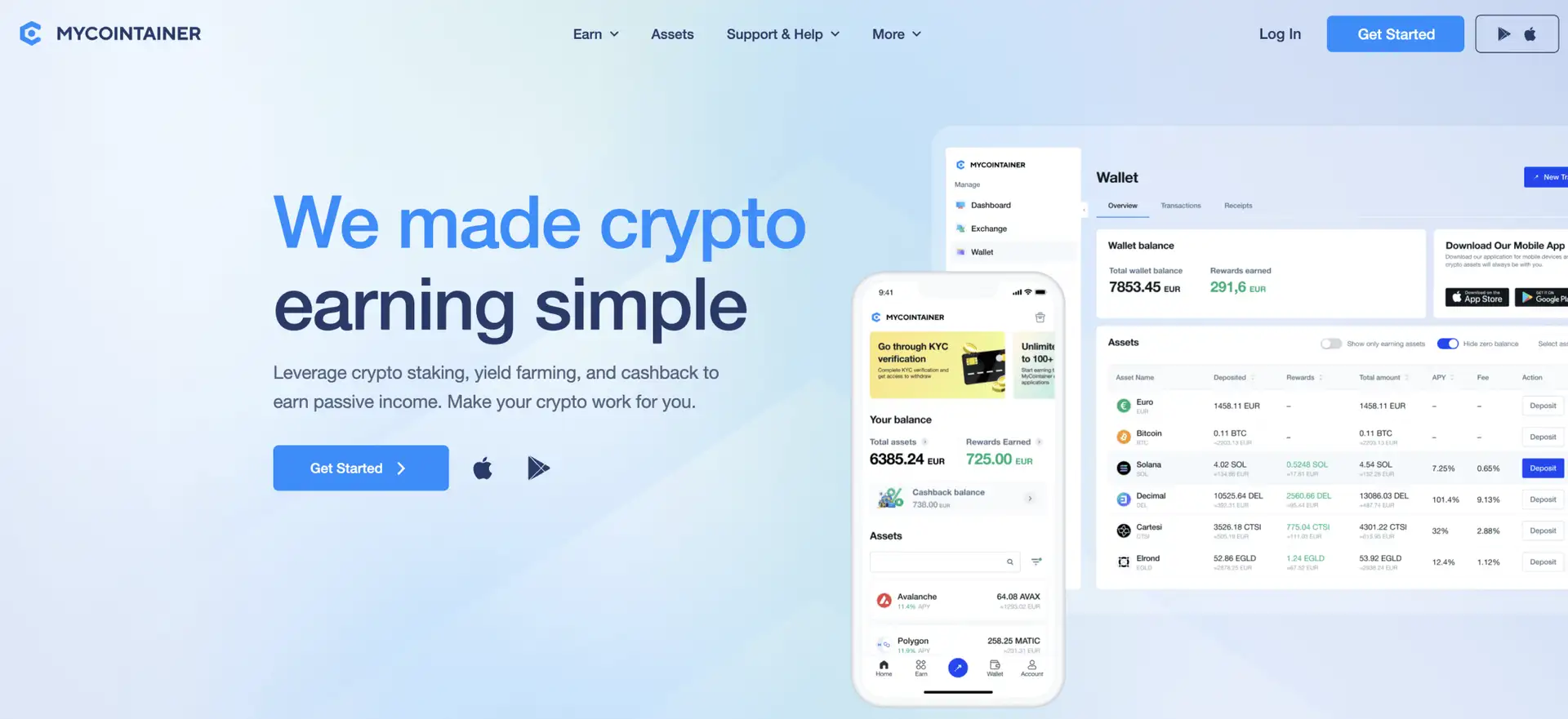 MyCointainer supports over 125 digital assets for staking, providing users with a broad selection of investment options. This extensive range allows users to diversify their portfolios and maximize their earning potential.