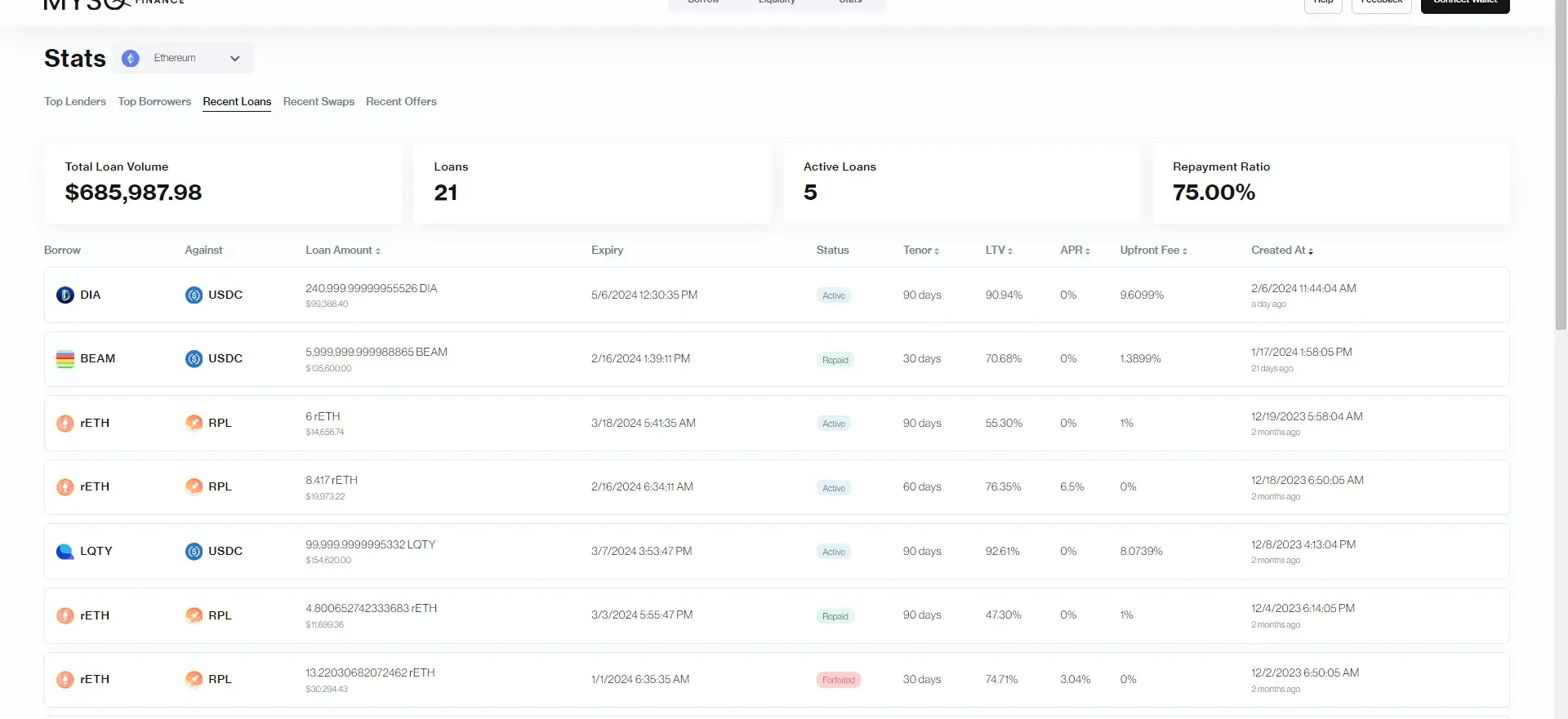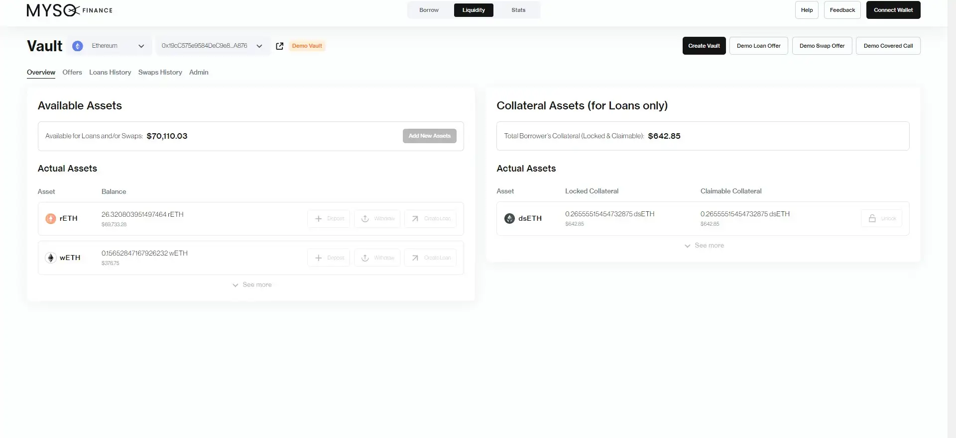 On MYSO Finance, you can use a variety of assets as collateral, including popular cryptocurrencies like Ethereum and stablecoins, as well as NFTs. This flexibility allows users to leverage different types of assets to secure loans that best suit their financial needs.