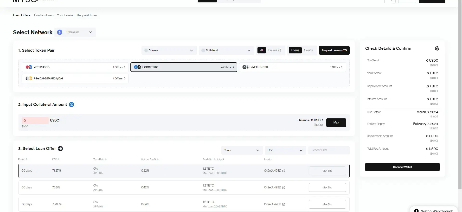 - Visit the Website: Go to the MYSO Finance website and connect your wallet to access the platform. Supported wallets include MetaMask and WalletConnect.