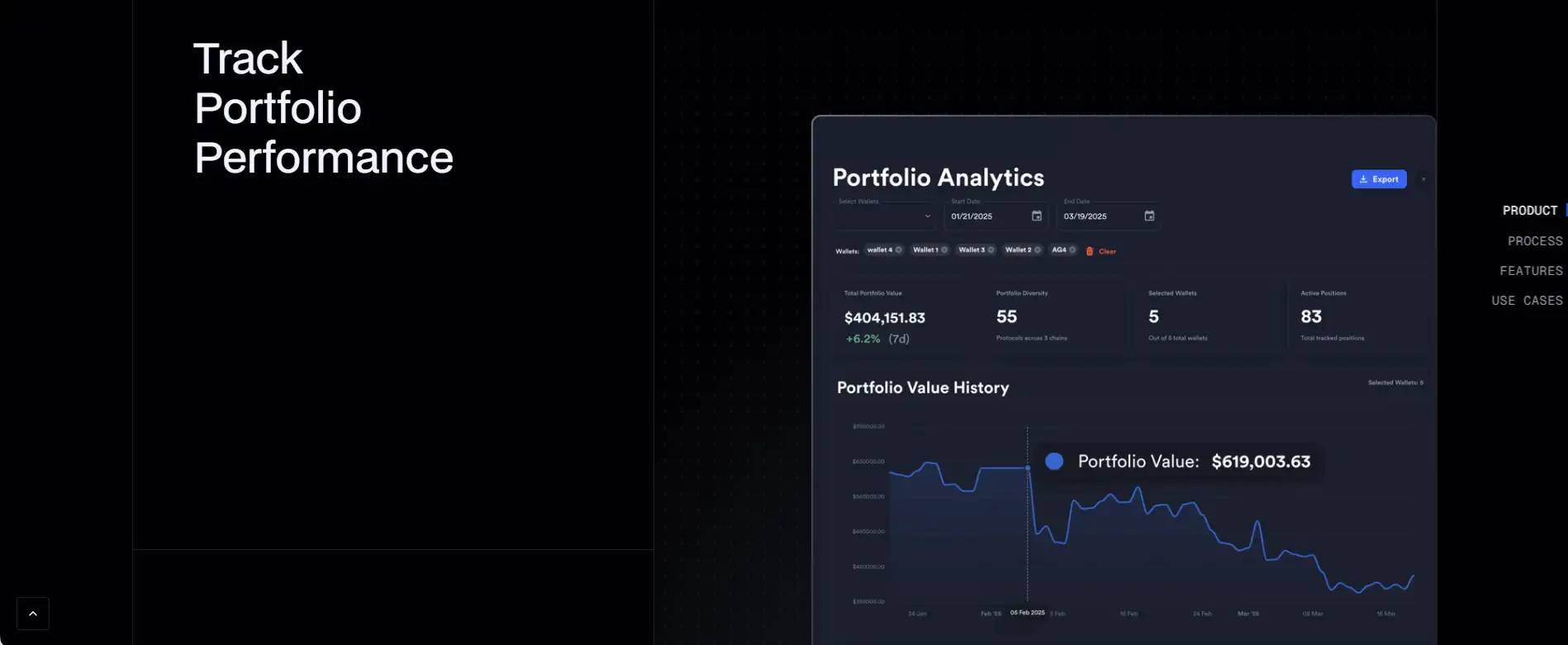 - Portfolio Performance Analytics: Track historical PnL, returns, and exposure across all DeFi positions from a unified dashboard.