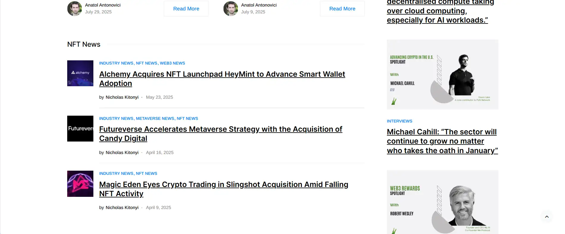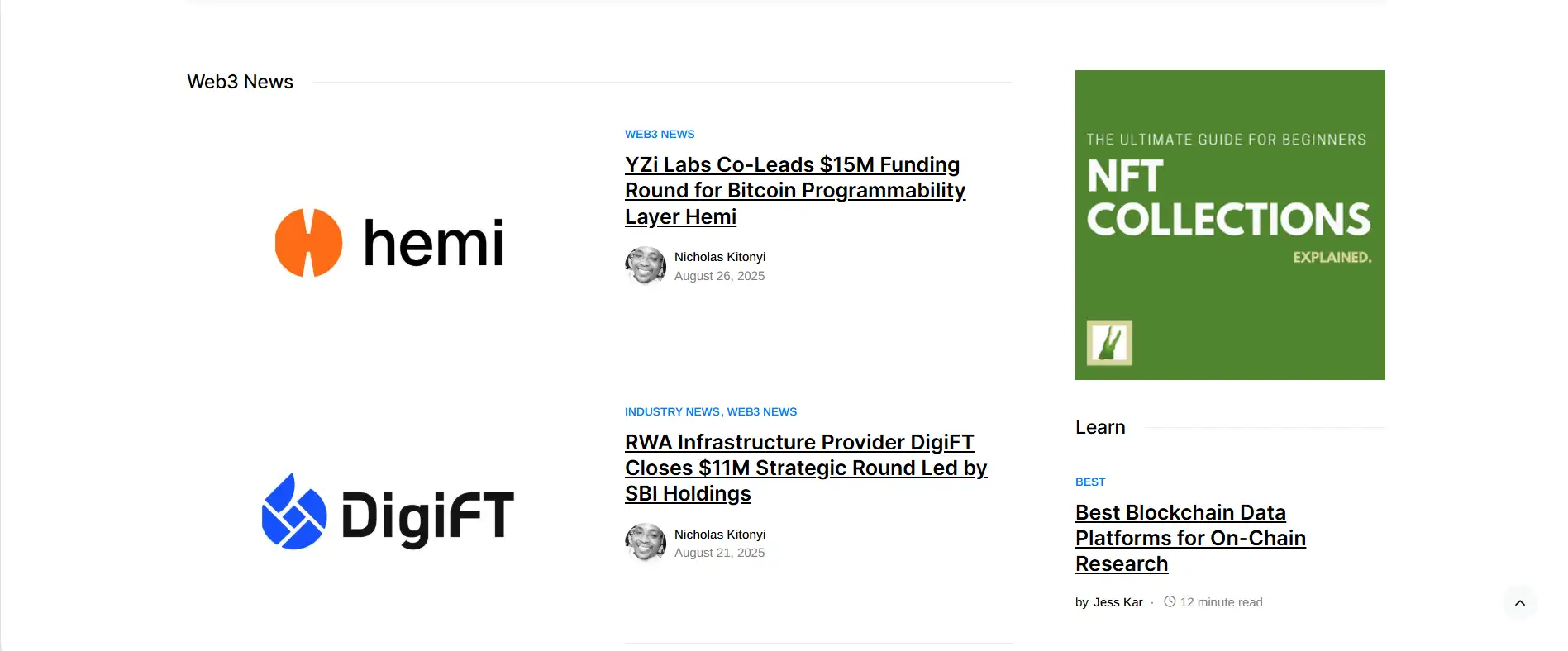 - Focused Industry Coverage: Specializes in reporting on NFTs, blockchain gaming, on-chain data, and Web3 startups, keeping content highly relevant and precise.