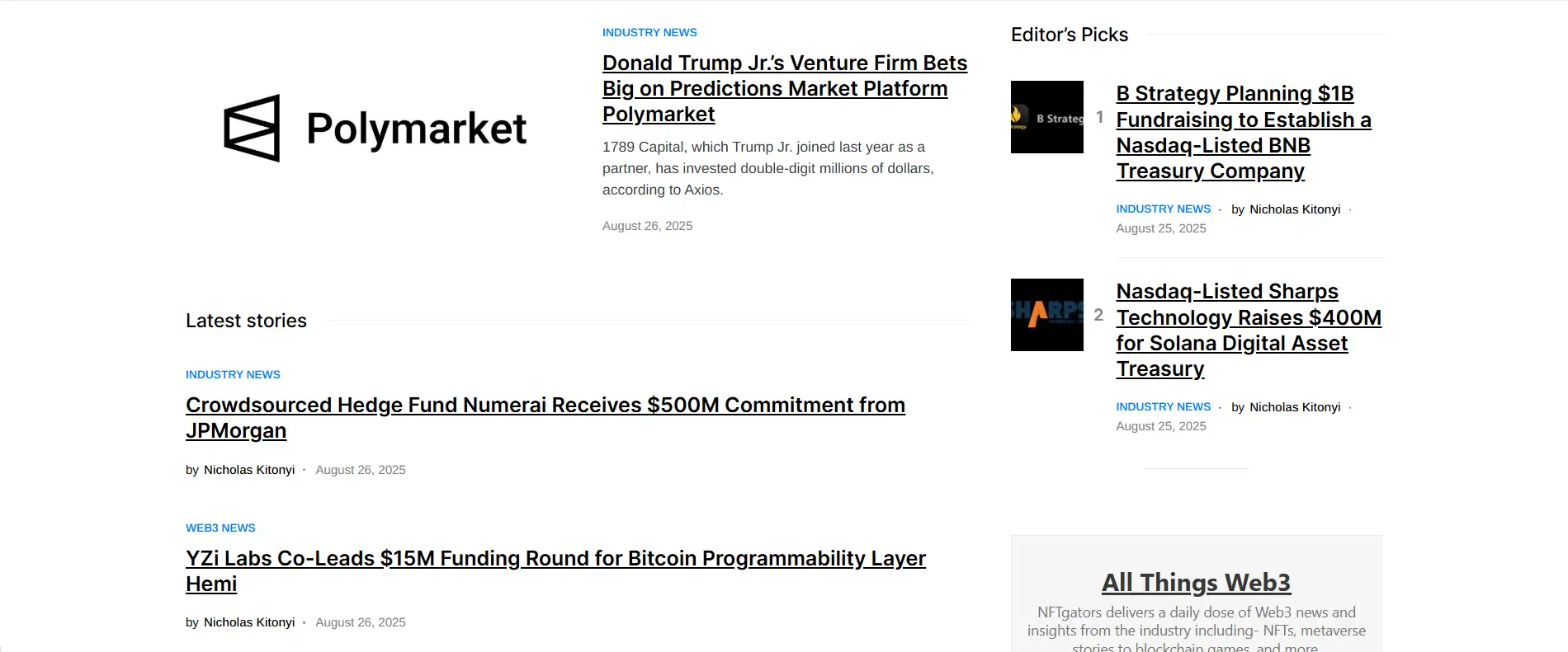 NFTgators provides up-to-the-minute insights into industry funding, blockchain development, NFT adoption, and emerging trends. With trusted analysis, expert interviews, and high-profile coverage, the platform has become a vital research and discovery tool for investors, devs, and founders navigating the ever-evolving Web3 landscape. Stay updated at NFTgators.com.