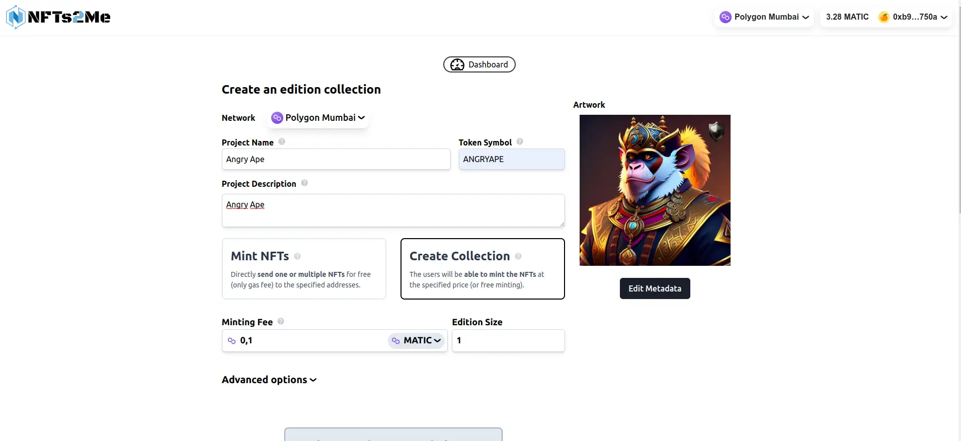 - Manage Your Collection: After deployment, you can manage your NFTs, track their performance, and make updates through the platform's interface. This includes adjusting prices, adding new attributes, or transferring ownership. NFTs2Me provides detailed analytics to help you monitor the success of your collection.