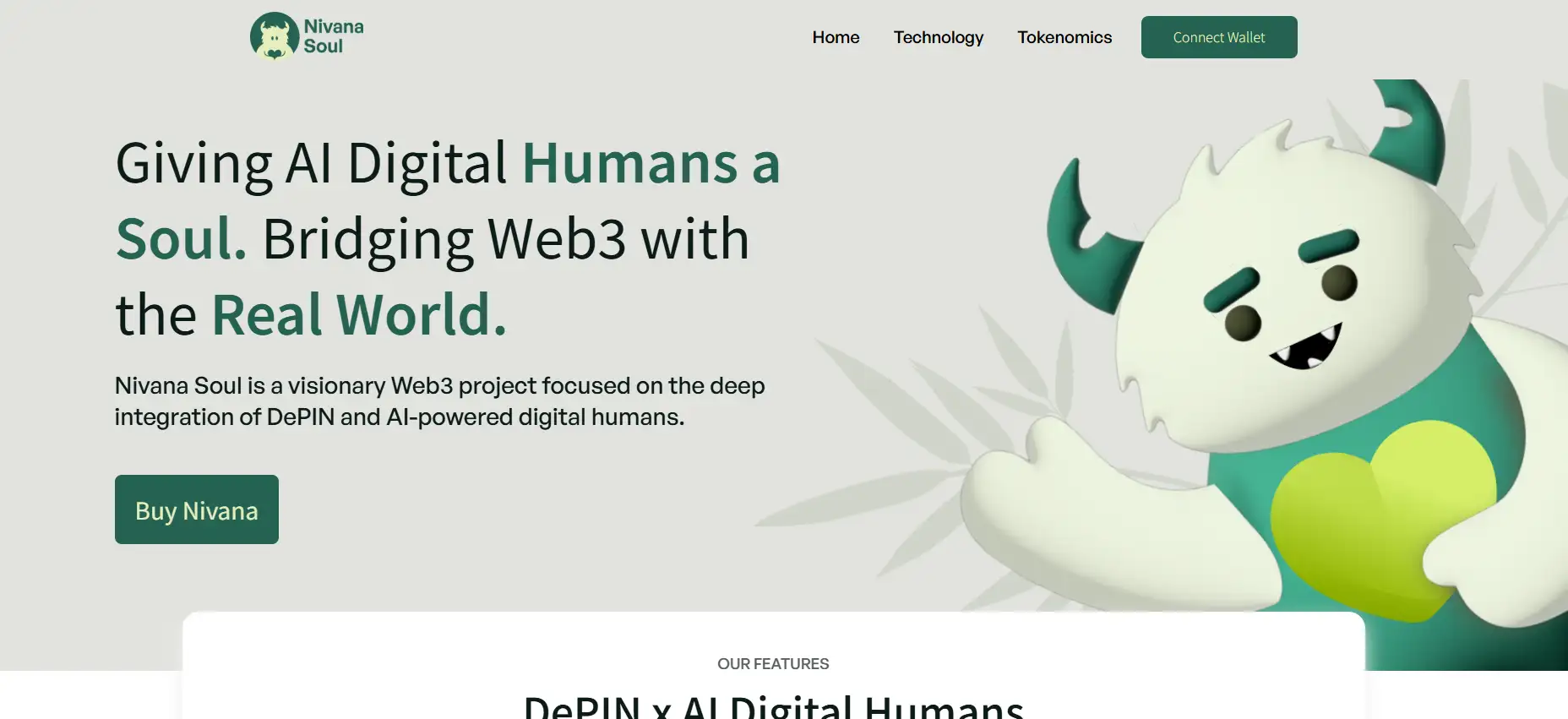 Nivana Soul is a transformative Web3 project that aims to revolutionize human-computer interaction by integrating AI-powered digital humans with decentralized physical infrastructure networks (DePIN). Positioned at the intersection of emerging blockchain infrastructure and emotionally intelligent artificial intelligence, Nivana Soul seeks to bridge the digital and physical worlds through a user-centric, value-sharing ecosystem. Its goal is to give AI digital humans "souls"—enabling them to act and interact in emotionally resonant, secure, and decentralized environments.