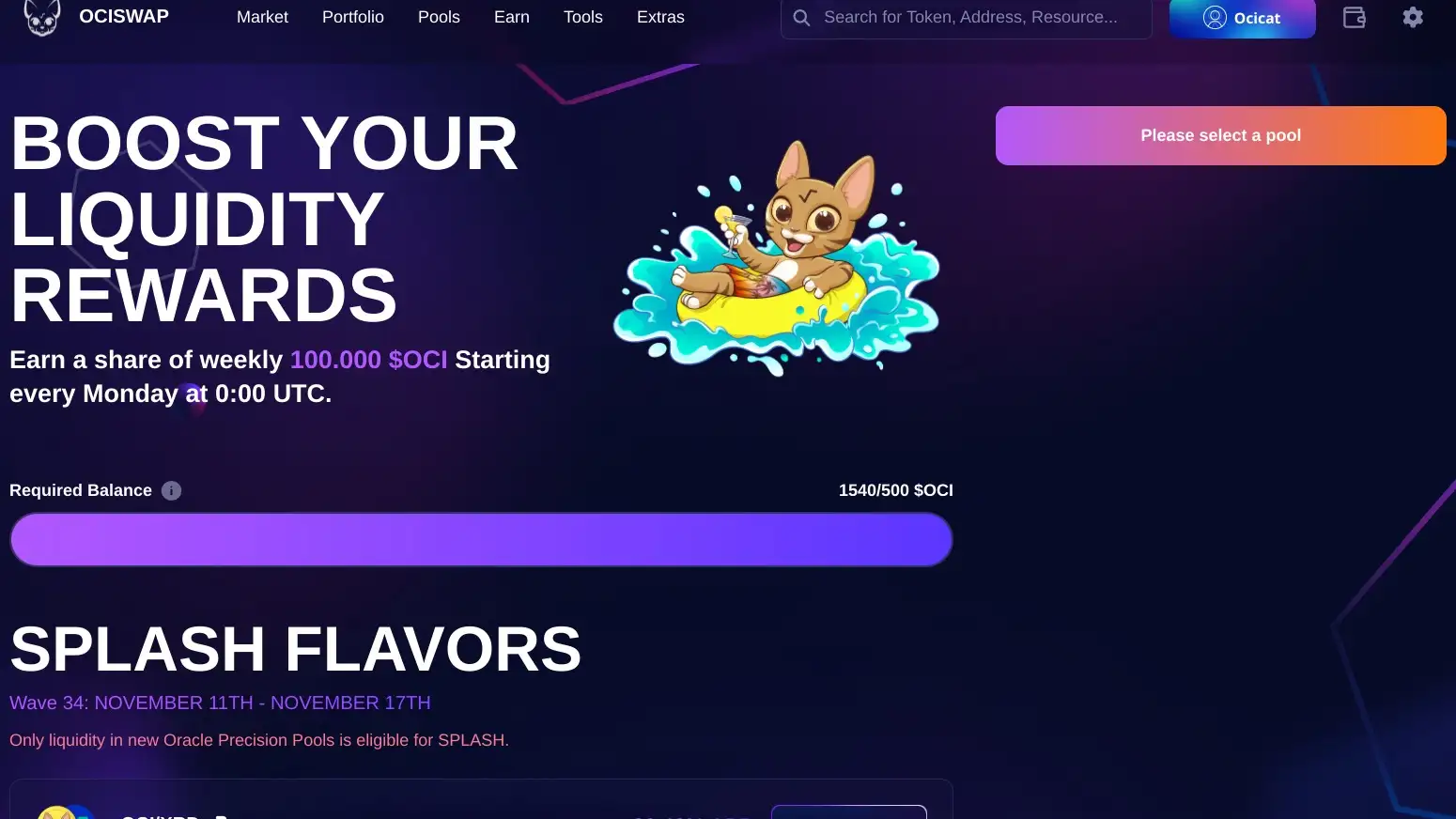 Participating in liquidity incentive programs such as SPLASH and Project Ignition allows users to earn OCI tokens as rewards for providing liquidity. These incentives help maximize returns while contributing to the platform’s liquidity. By joining these programs on Ociswap, users also support sustainable ecosystem growth, ensuring a strong trading experience with minimal slippage and high capital efficiency.