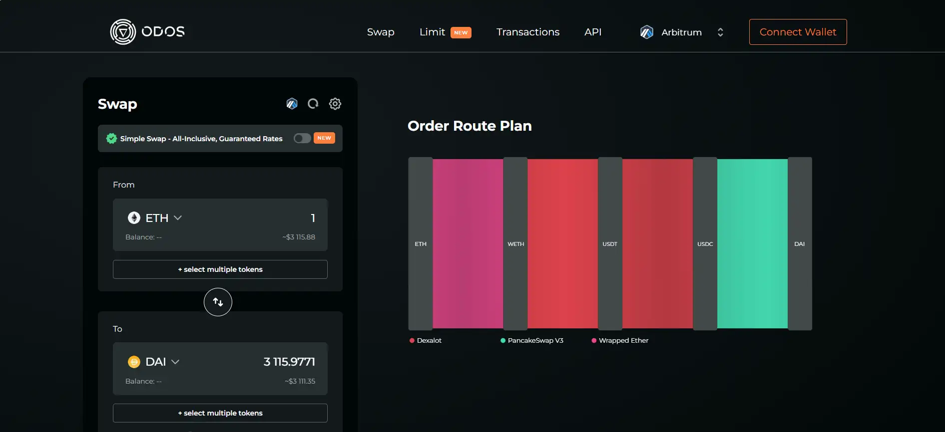 At its core, Odos connects to leading decentralized exchanges (DEXs) such as Uniswap, Curve, and Balancer, among others. By splitting orders across different platforms, Odos helps traders achieve the most cost-effective swaps with reduced impact on individual liquidity pools.