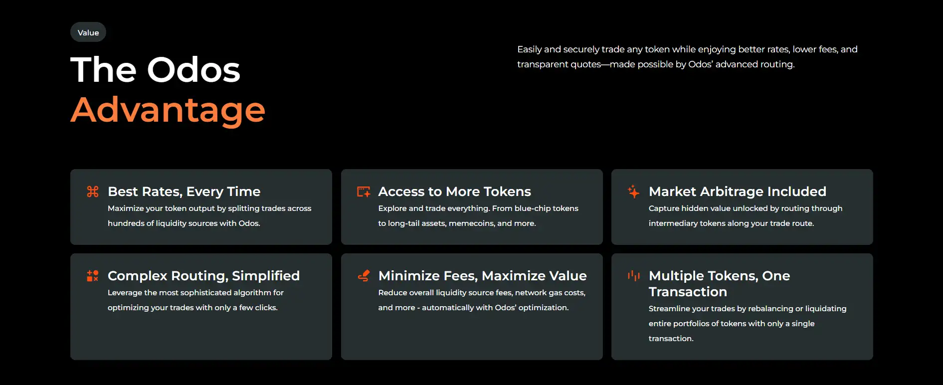 Odos provides a unique set of features and benefits that deliver unmatched value in the DeFi trading ecosystem: