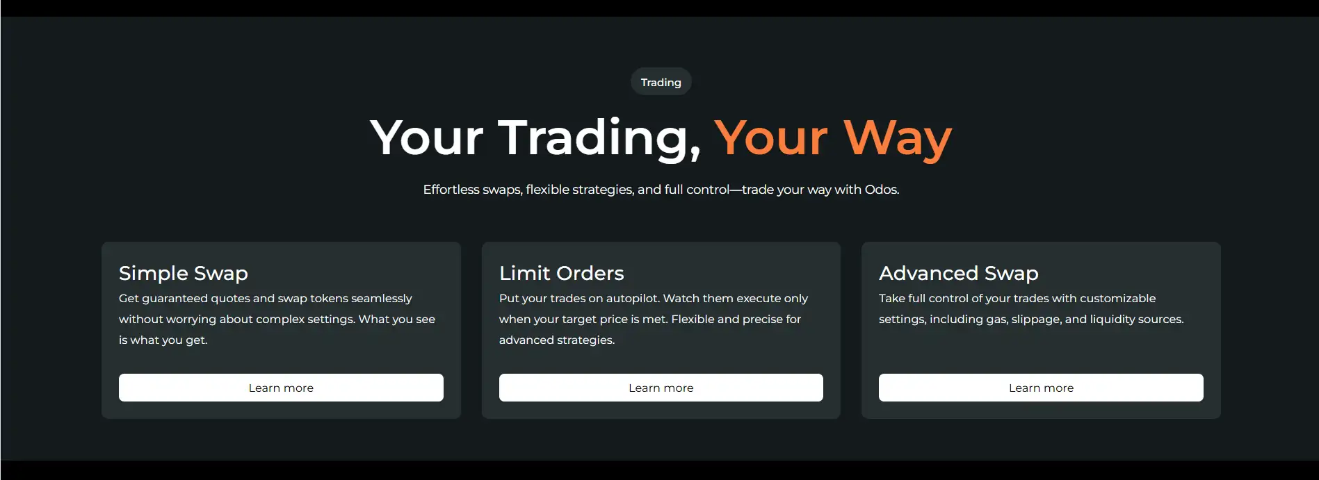 - For Traders: Visit the Odos dApp to connect your wallet, explore token pairs, and start swapping instantly using Simple, Limit, or Advanced modes.