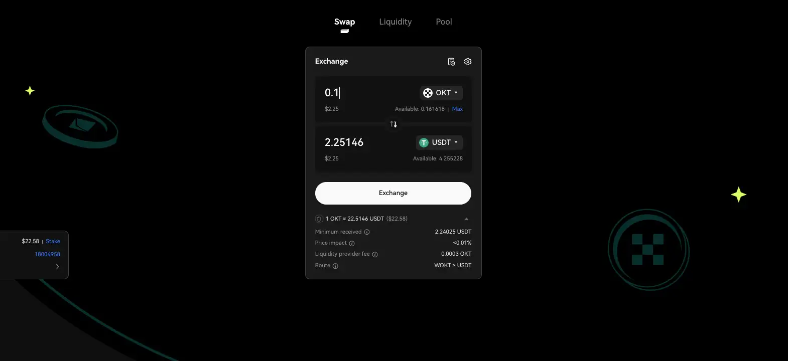 - User-Friendly Interface: Designed to be intuitive and easy to navigate, OKTC Swap caters to both new and experienced traders. The platform's clean and straightforward design makes it easy to execute trades and monitor transactions.