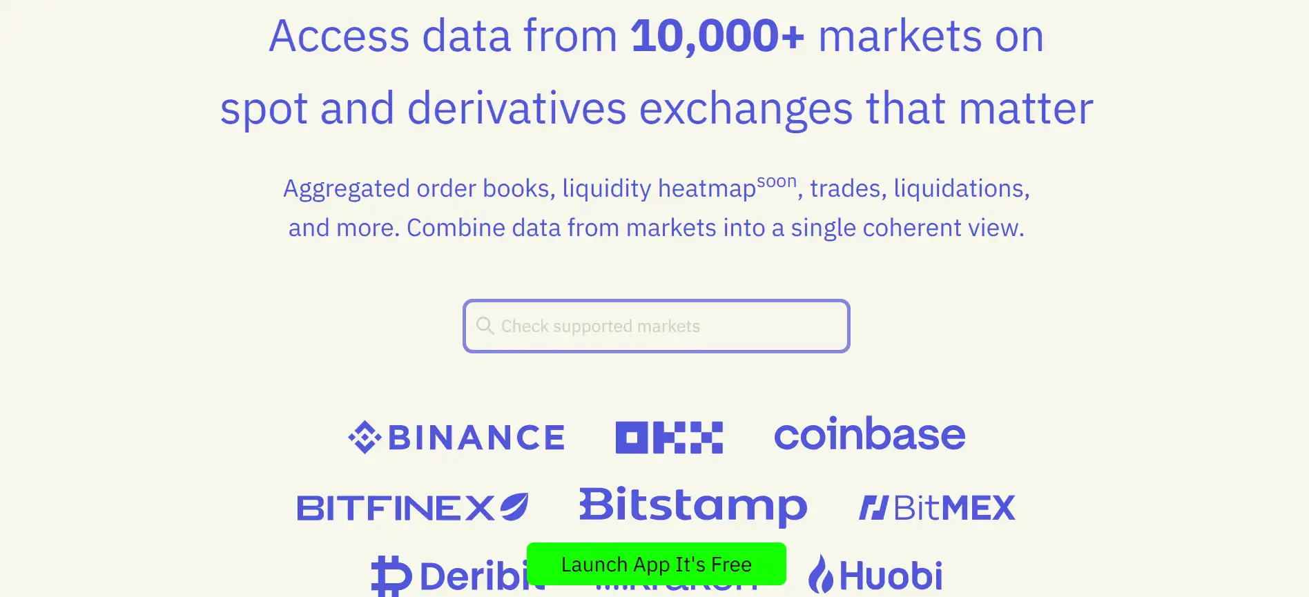 - 11,000+ Market Coverage: Aggregates spot and derivatives data for over 1,900 assets across top CEXs including Binance, Coinbase, Kraken, OKX, Deribit, and more.