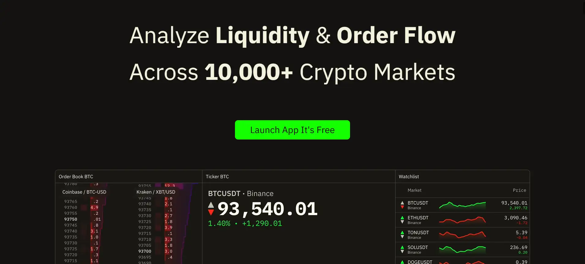 Okotoki is a high-performance crypto data analytics platform designed to help traders and analysts visualize and understand liquidity, order flow, and market activity across 10,000+ spot and derivatives markets. By aggregating live and historical data from major exchanges into a single coherent interface, it allows users to assess trade behavior, detect order book imbalances, and react faster to changing market dynamics.