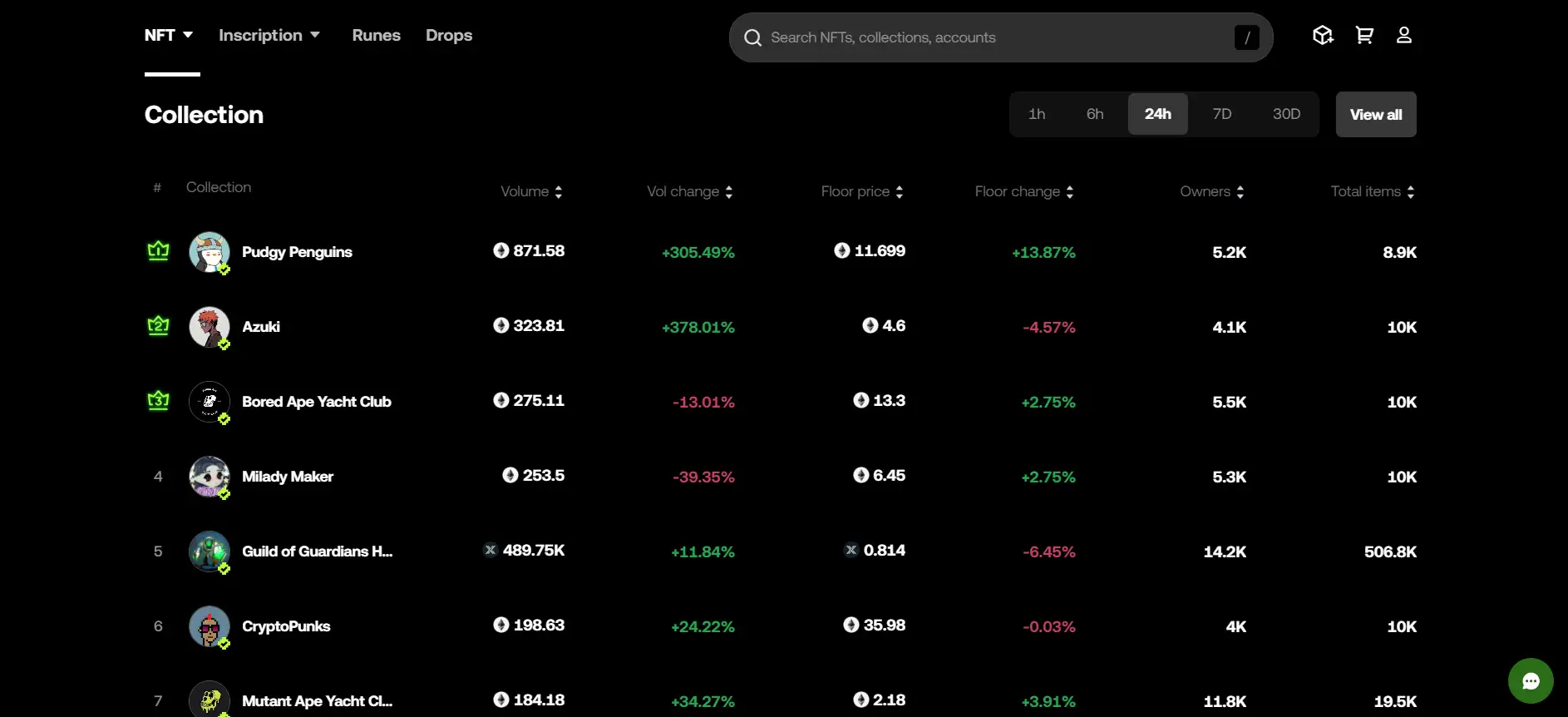 A key feature of the platform is its support for multiple blockchain networks, enabling cross-chain transactions and expanding access to a diverse range of NFT collections. This allows users to explore trending projects across Ethereum, BNB Chain, Polygon, and other ecosystems without switching between different marketplaces.