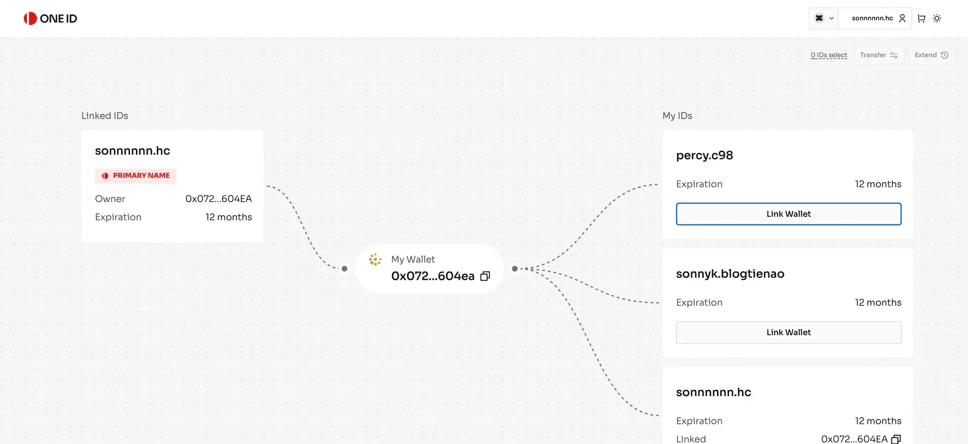 - Link Wallet: Follow the guide on How to Link and Unlink Wallet to connect your wallet to your OneID.
