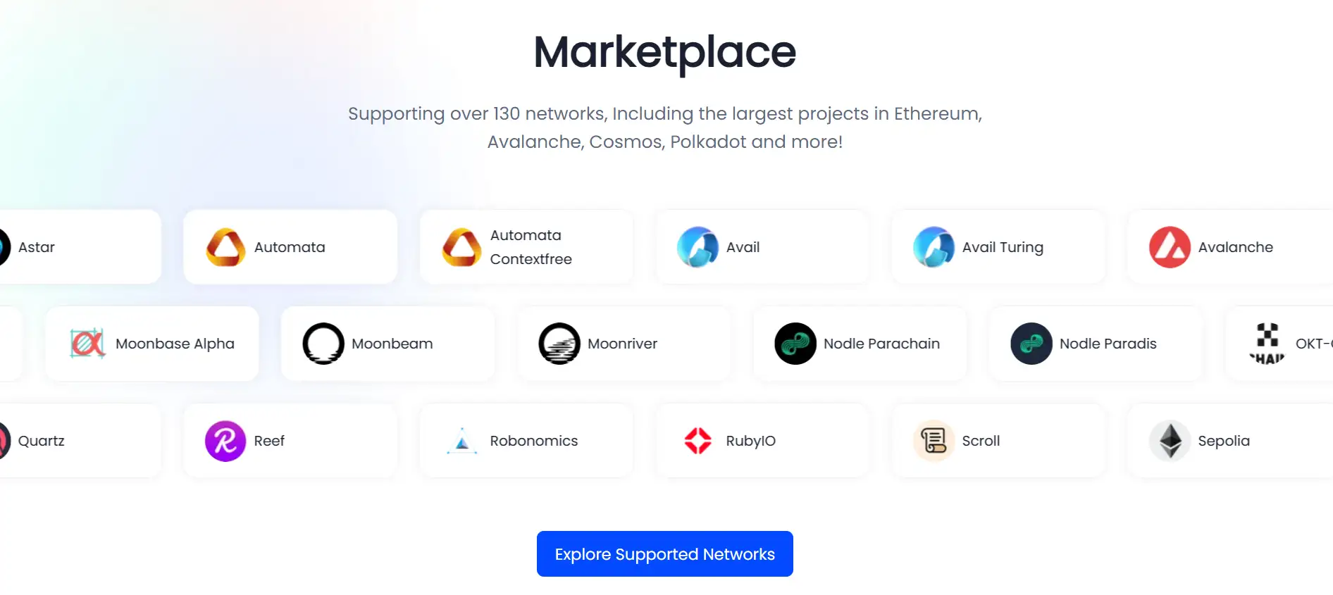 OnFinality supports over 130 networks, including all major Layer-1 and Layer-2 ecosystems such as Ethereum, Arbitrum, Optimism, Avalanche, Cosmos, Solana, Polkadot, and BNB Chain. Its automated infrastructure tools allow users to deploy and scale Substrate-based networks in just a few clicks, and its indexing services power millions of requests daily for top-tier blockchain protocols.