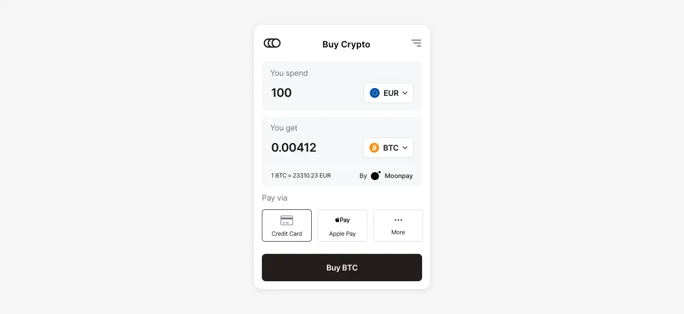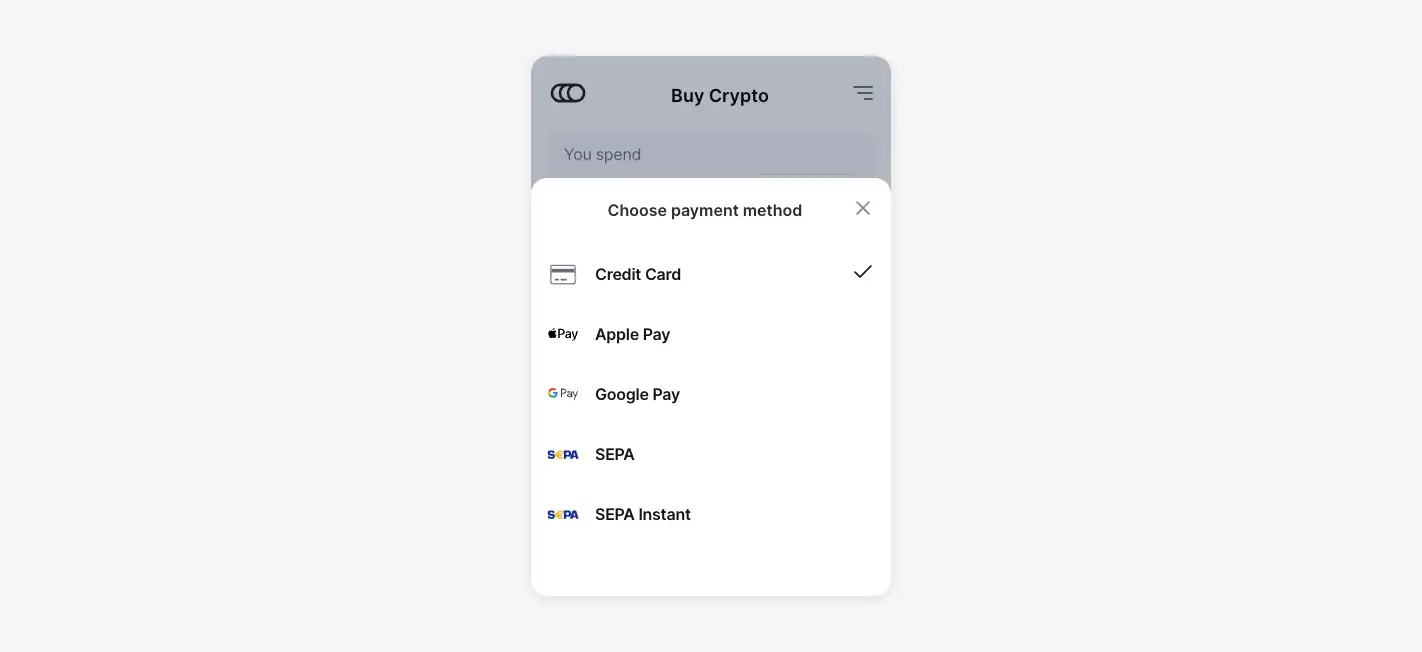 - Configure the widget to match your branding and user preferences, including supported payment methods and cryptocurrencies.