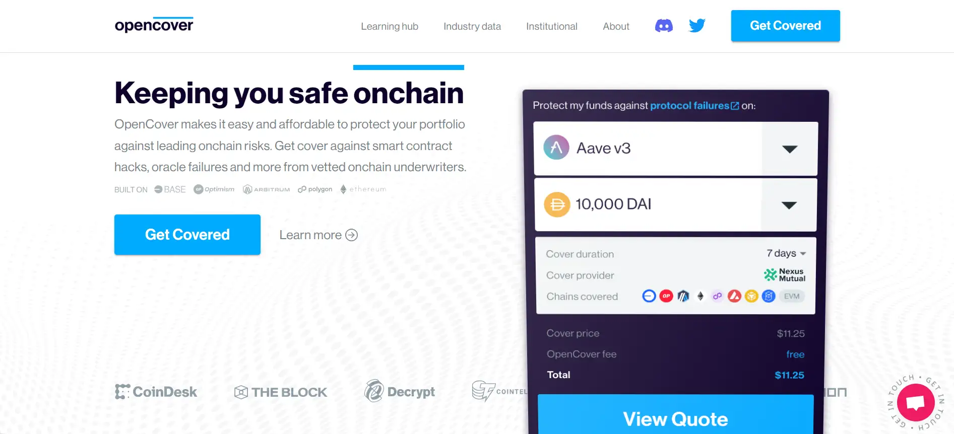 OpenCover is a decentralized insurance aggregator designed to provide seamless access to DeFi insurance. As the decentralized finance ecosystem continues to expand, the risks associated with smart contract vulnerabilities, hacks, and protocol failures remain a significant concern. OpenCover addresses this issue by connecting users with multiple blockchain-based insurance providers, allowing them to compare and purchase coverage in a decentralized manner.