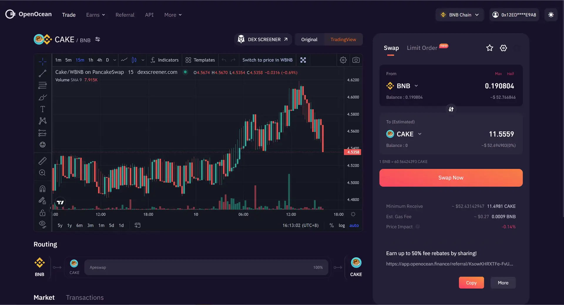 - Liquidity Aggregation: By aggregating liquidity from both decentralized and centralized exchanges, OpenOcean ensures users get the best trading prices with minimal slippage.