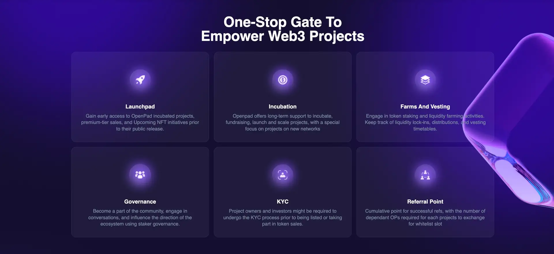 - Comprehensive Support: OpenPad's incubation program provides emerging projects with mentorship, funding, and strategic guidance, fostering their growth and success.