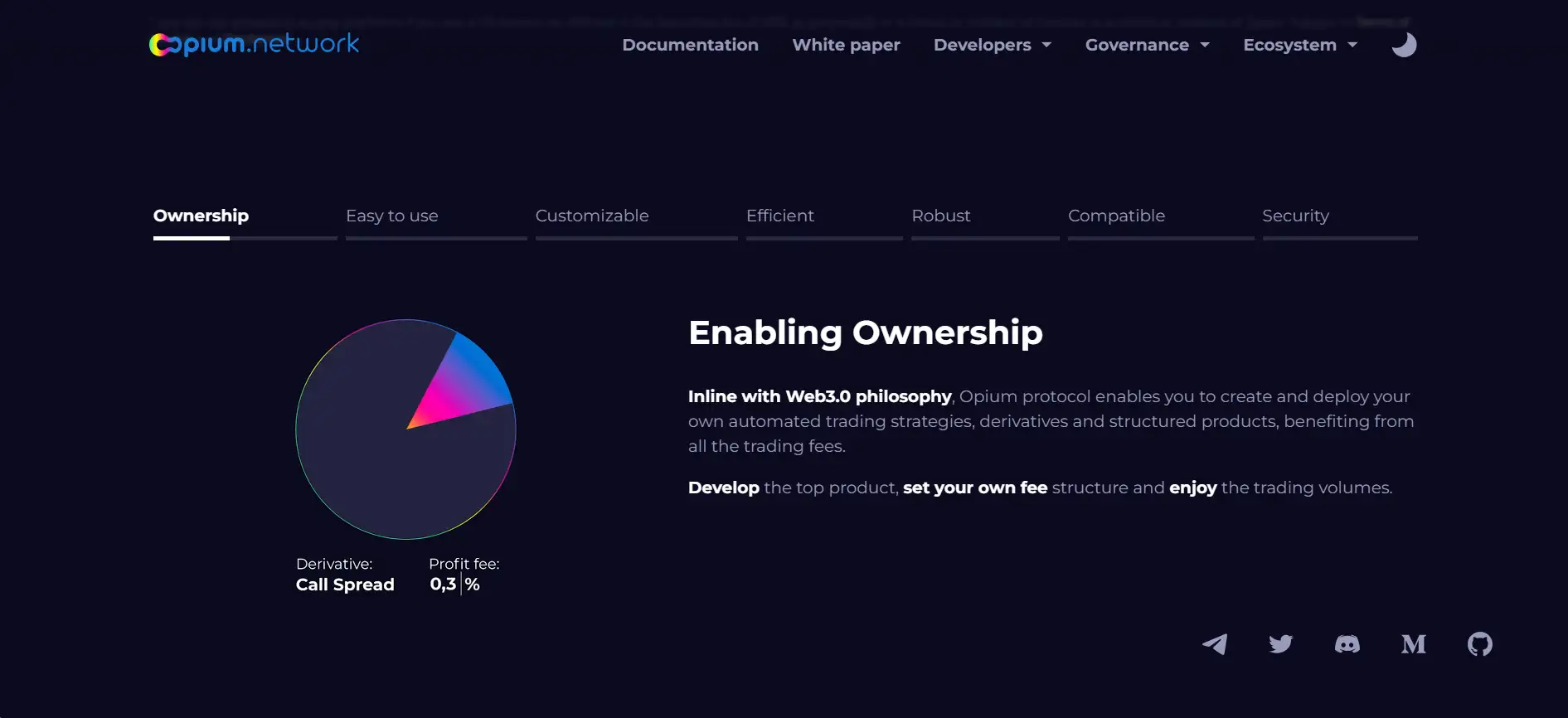 - Governance via DAO: The protocol is managed by Opium token holders through a decentralized voting system.