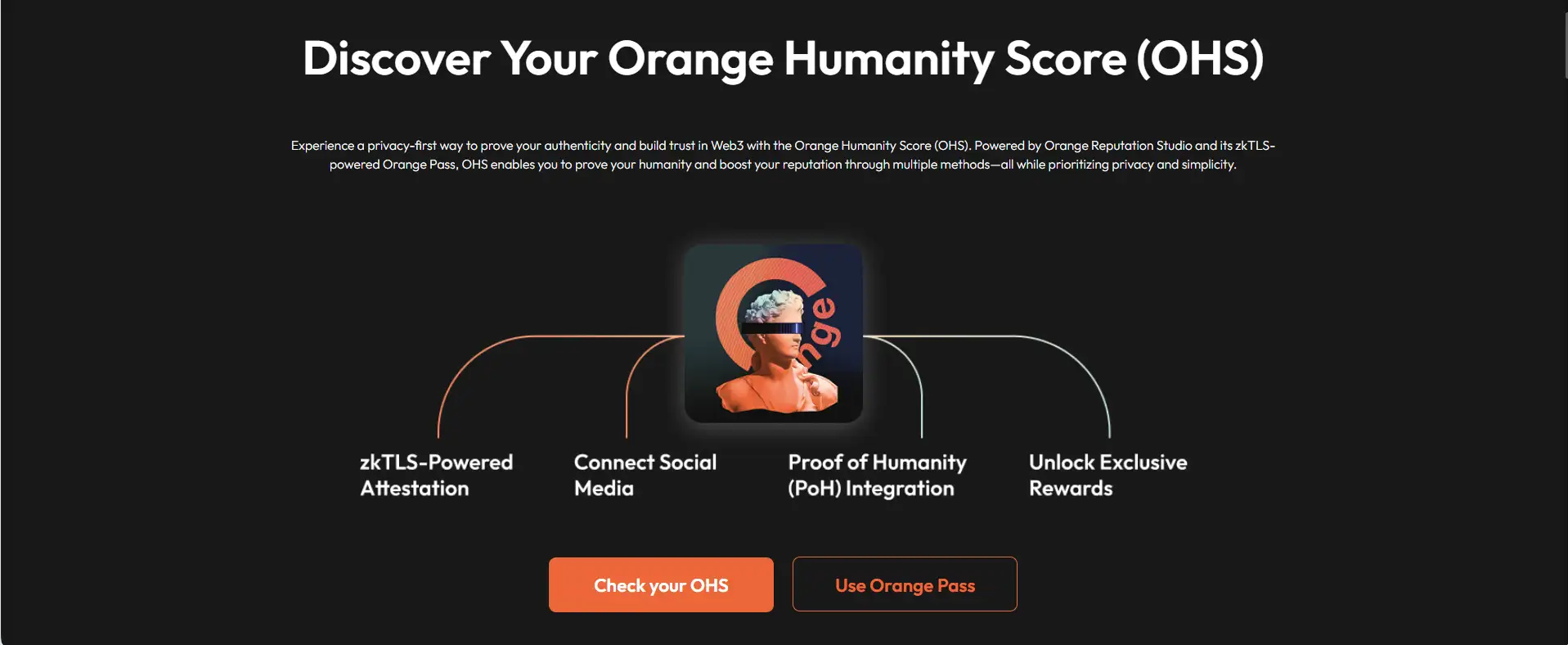 - Dynamic Scoring via OHS: The Orange Humanity Score dynamically reflects trustworthiness based on both on-chain behavior and off-chain verifications.
