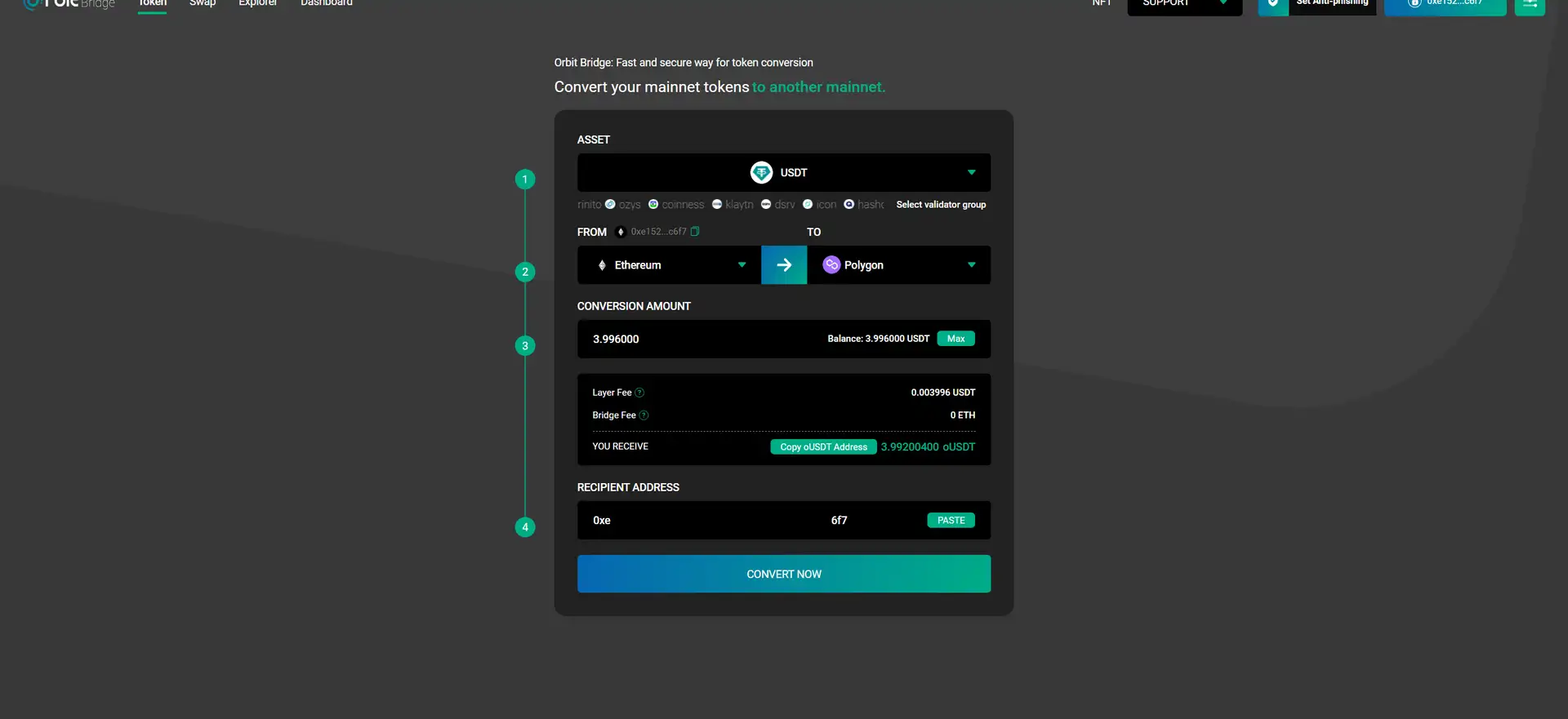 - Select Networks: Choose the source and target blockchain networks for your token transfer.