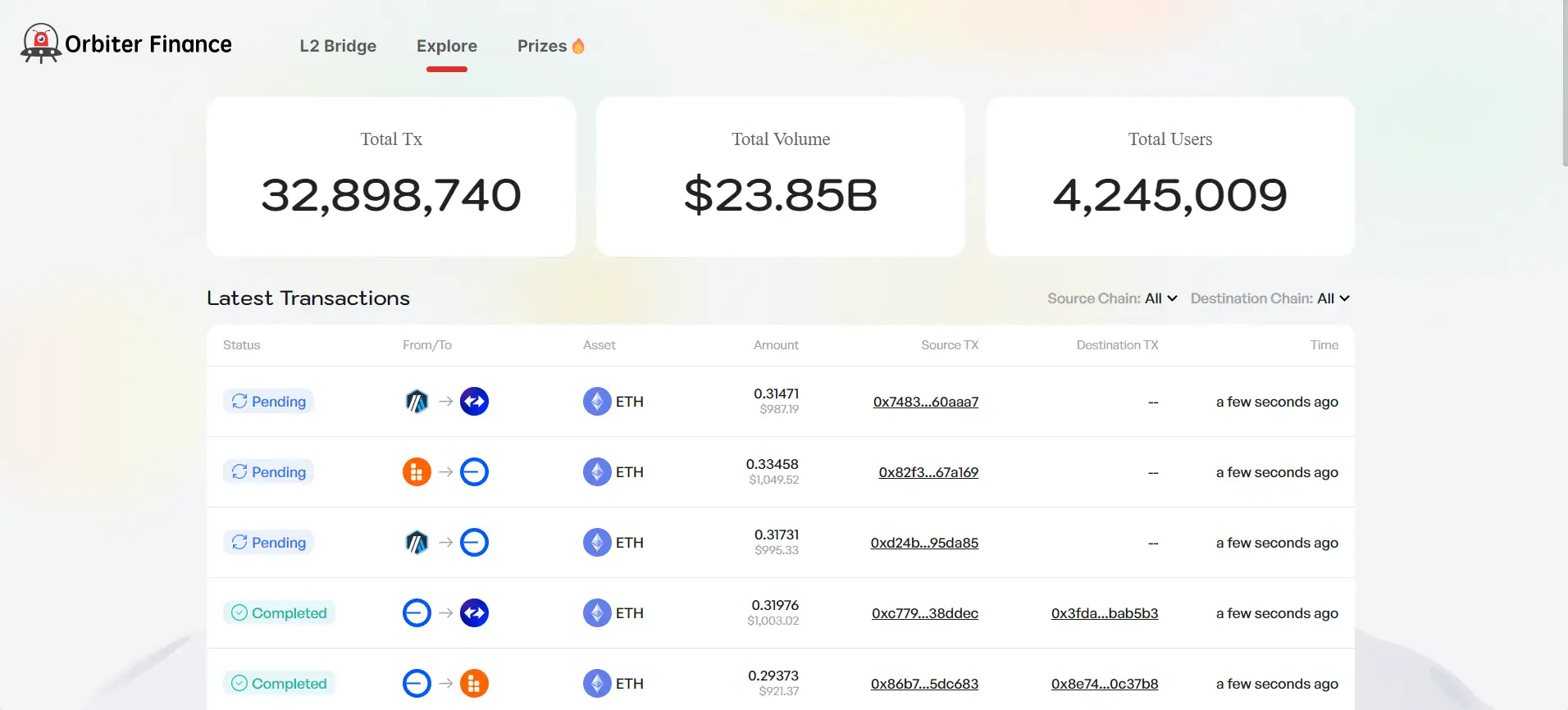 - Multi-Chain Support: Orbiter Finance supports major Layer 2 rollups such as Arbitrum, Optimism, zkSync, StarkNet, and Polygon zkEVM.