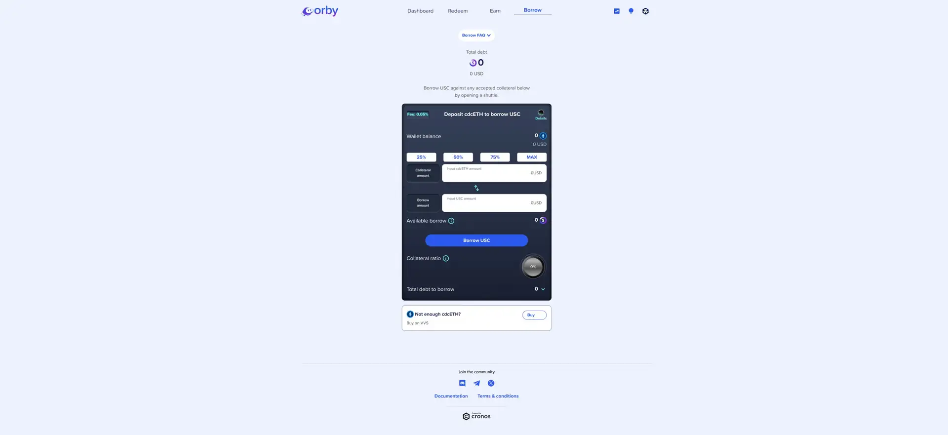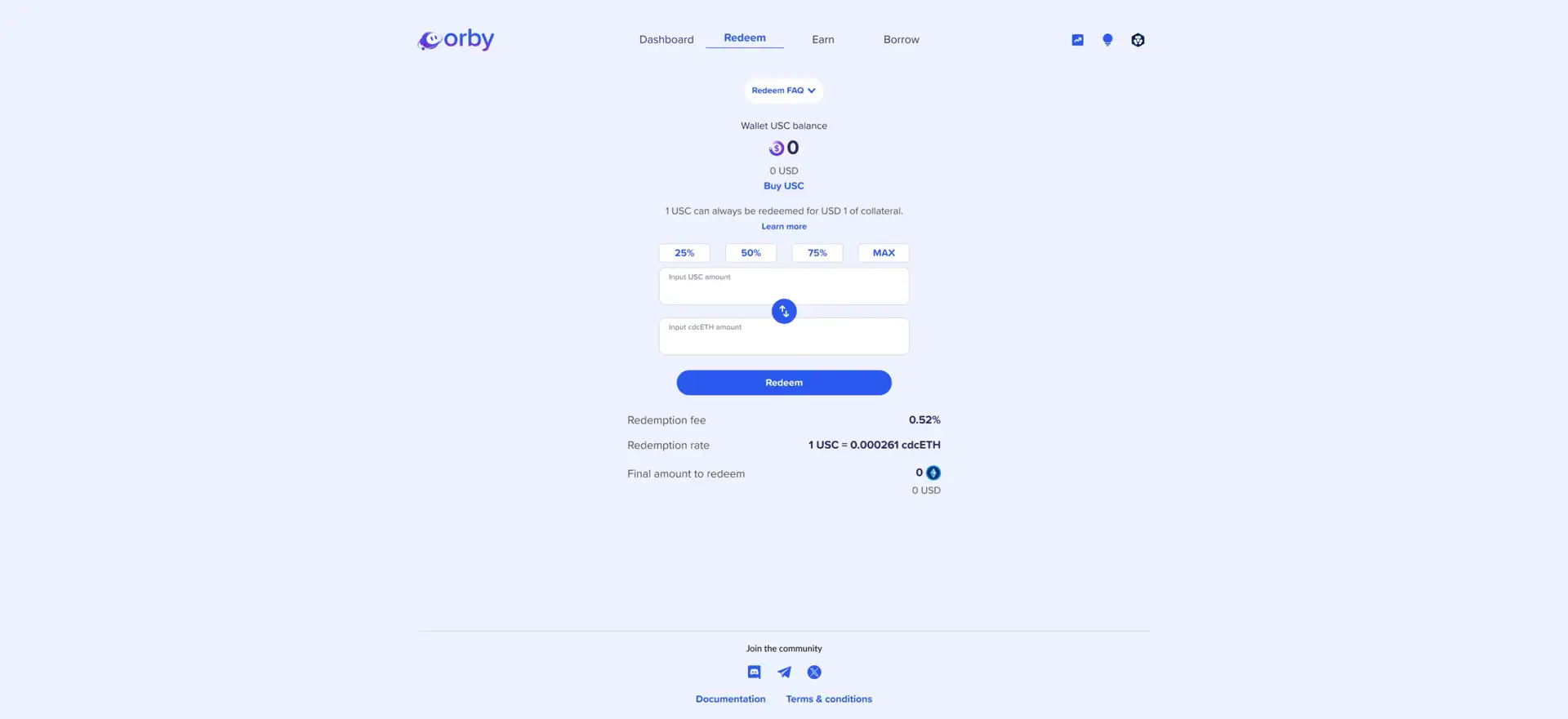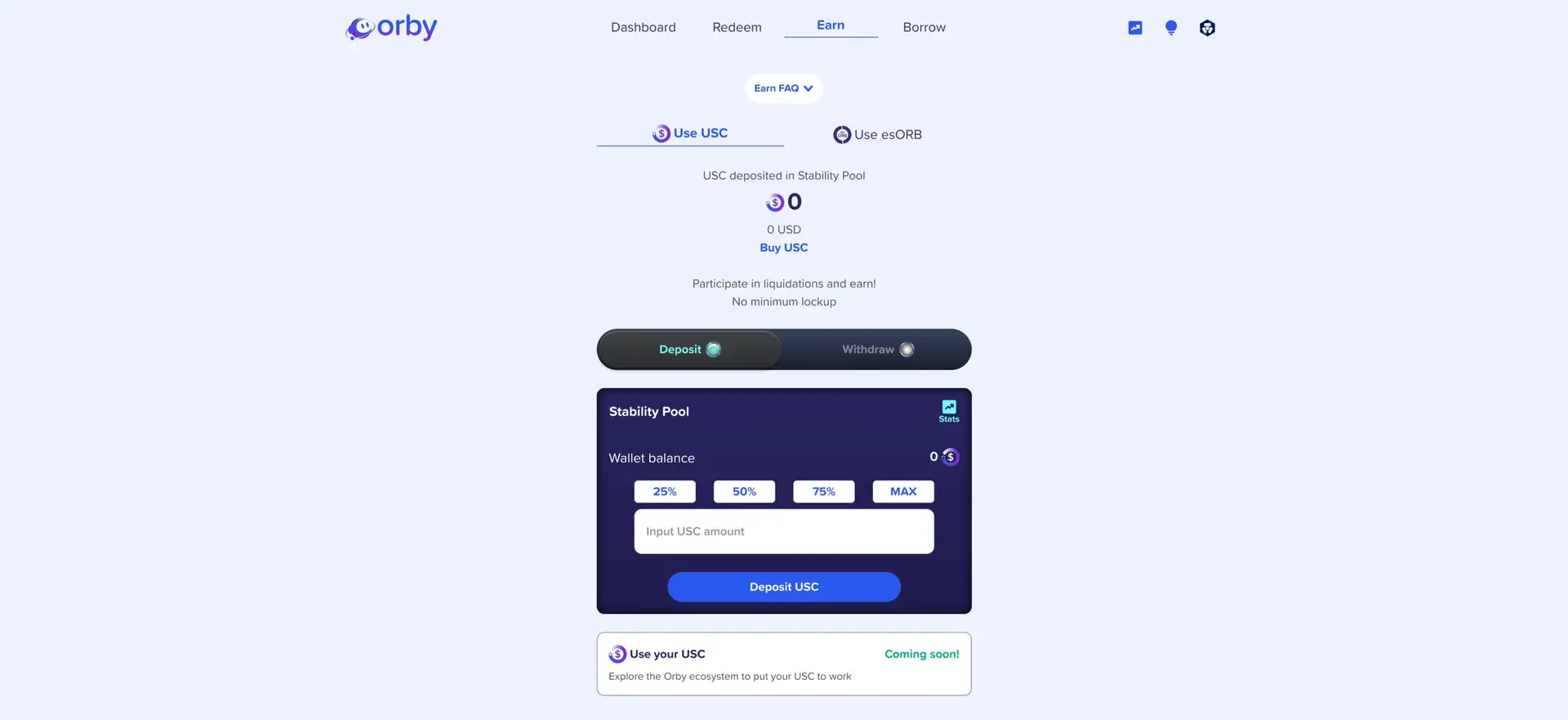 - Mint $USC by borrowing against your deposited collateral. The interface will guide you through the process, showing the amount of $USC you can mint based on your collateral.