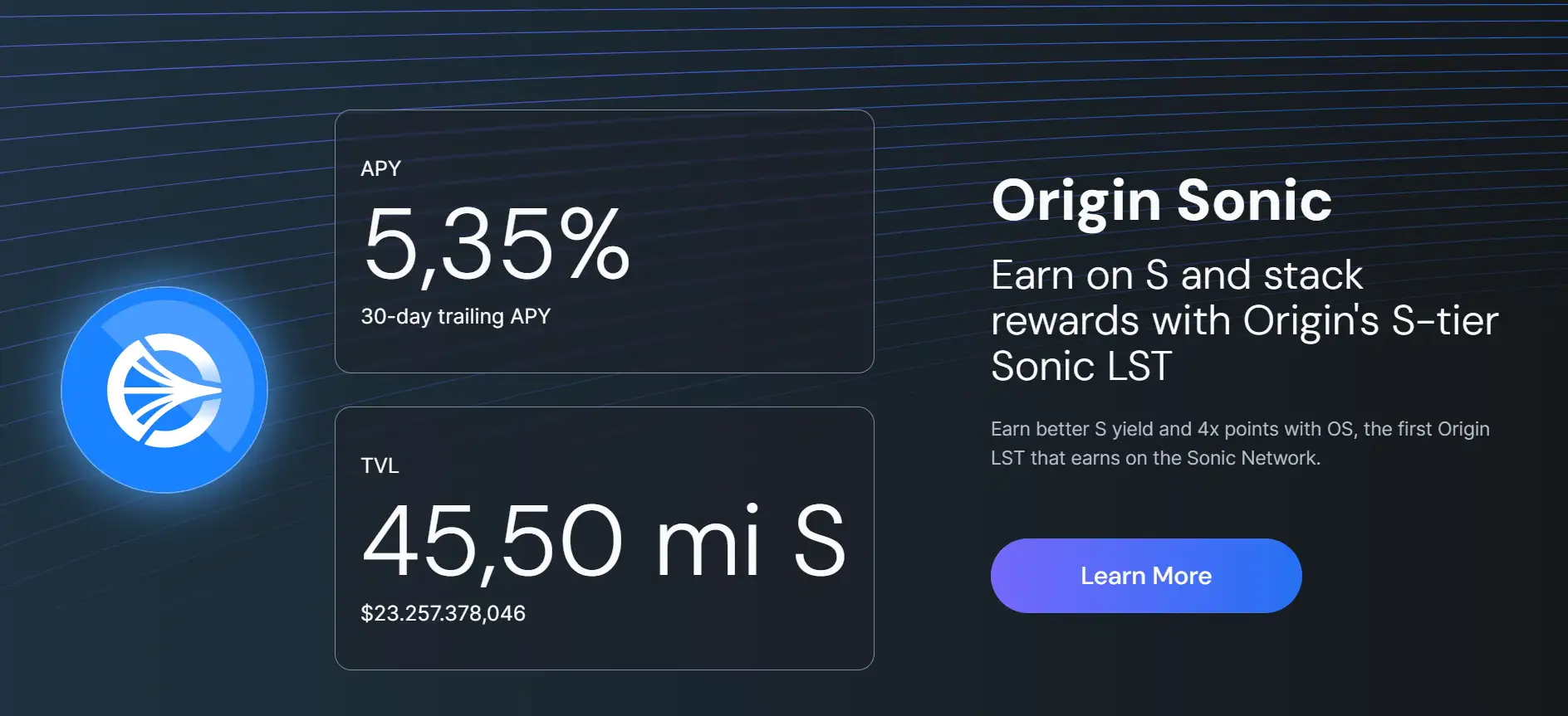 Origin Sonic (OS) is the only Sonic LST that gives you a 4x multiplier on Sonic Points. You can earn active points by using OS in DeFi or generate passive points just by holding it. These points qualify you for future Sonic token airdrops and exclusive rewards. Learn how to start at originprotocol.com.