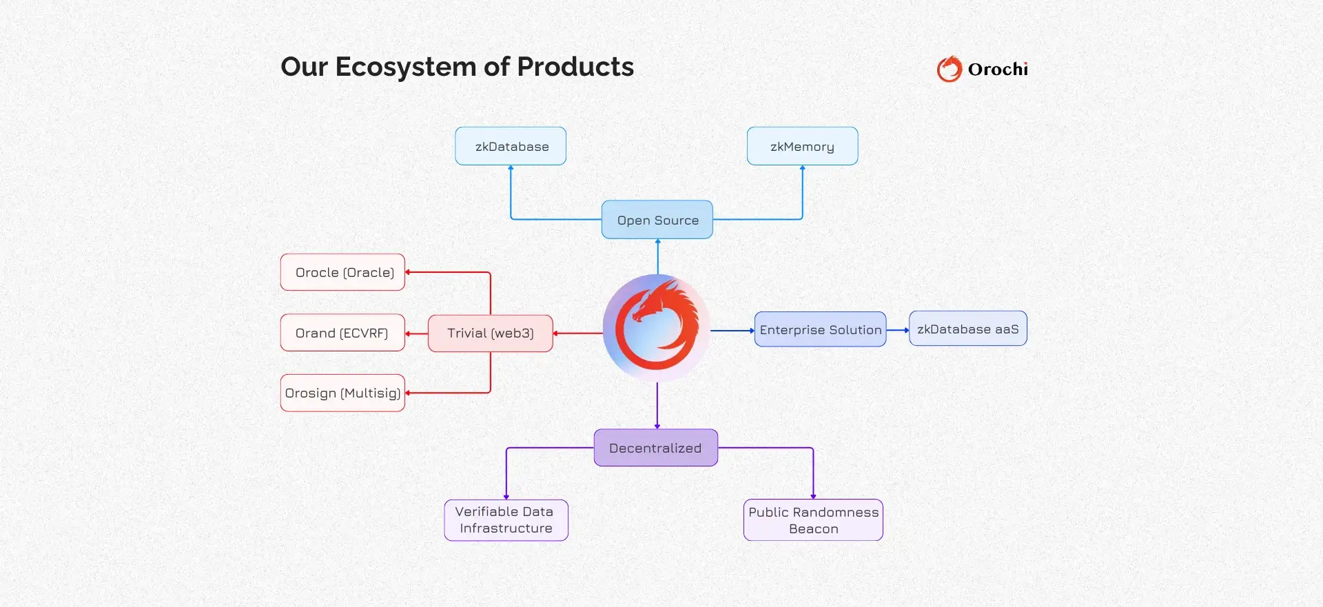 Unlike traditional blockchain networks, Orochi Network provides a decentralized, high-performance infrastructure that ensures verifiable data processing without compromising security. Its ecosystem includes innovative products like zkDatabase, zkMemory, Orocle, and Orand, all designed to create a seamless and scalable environment for Web3 applications.