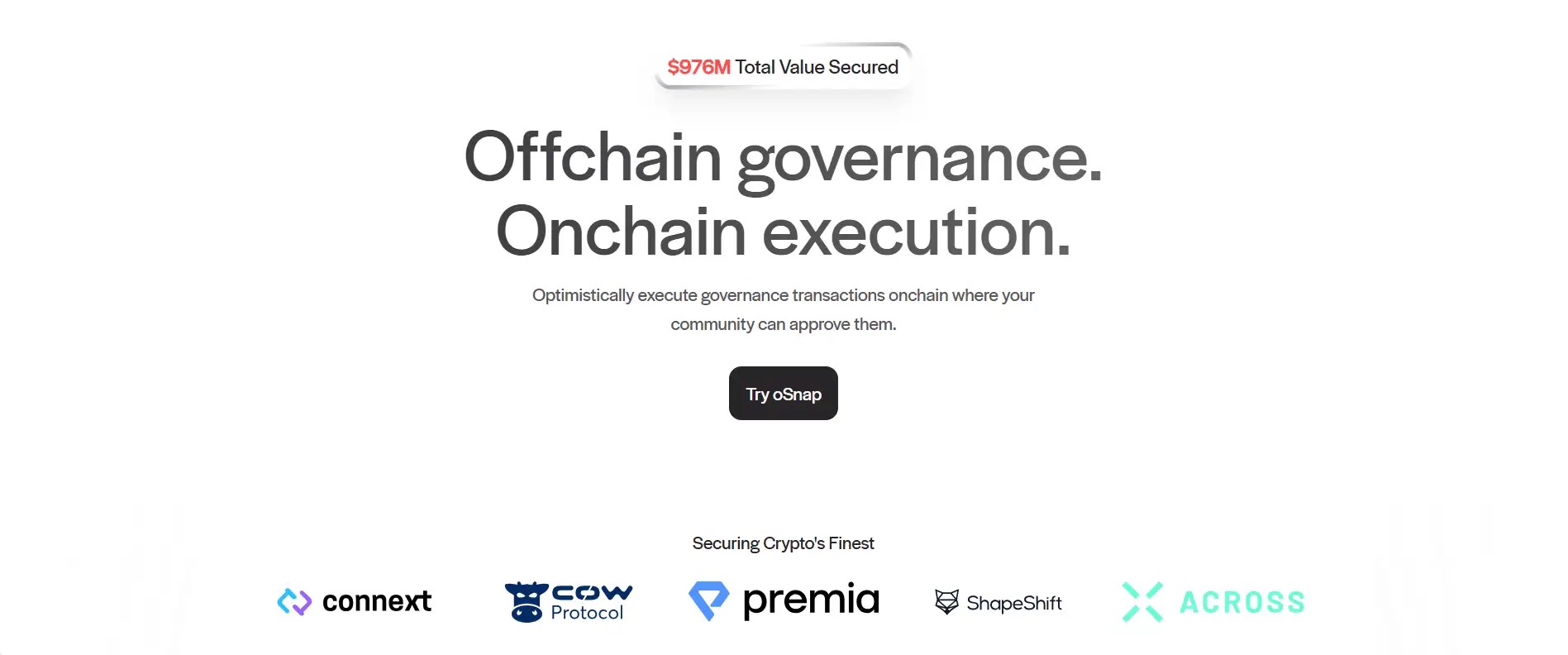 By integrating oSnap into a Snapshot Space and Safe wallet, communities can securely and automatically implement governance outcomes without relying on centralized multisigs. Proposals are passed offchain, verified via UMA’s oracle, and executed directly onchain, enabling faster, cheaper, and more censorship-resistant coordination. With over $979M in total value secured by UMA’s Optimistic Oracle, oSnap is already trusted by leading protocols such as Across, Developer DAO, Nexus Mutual, and many more.
