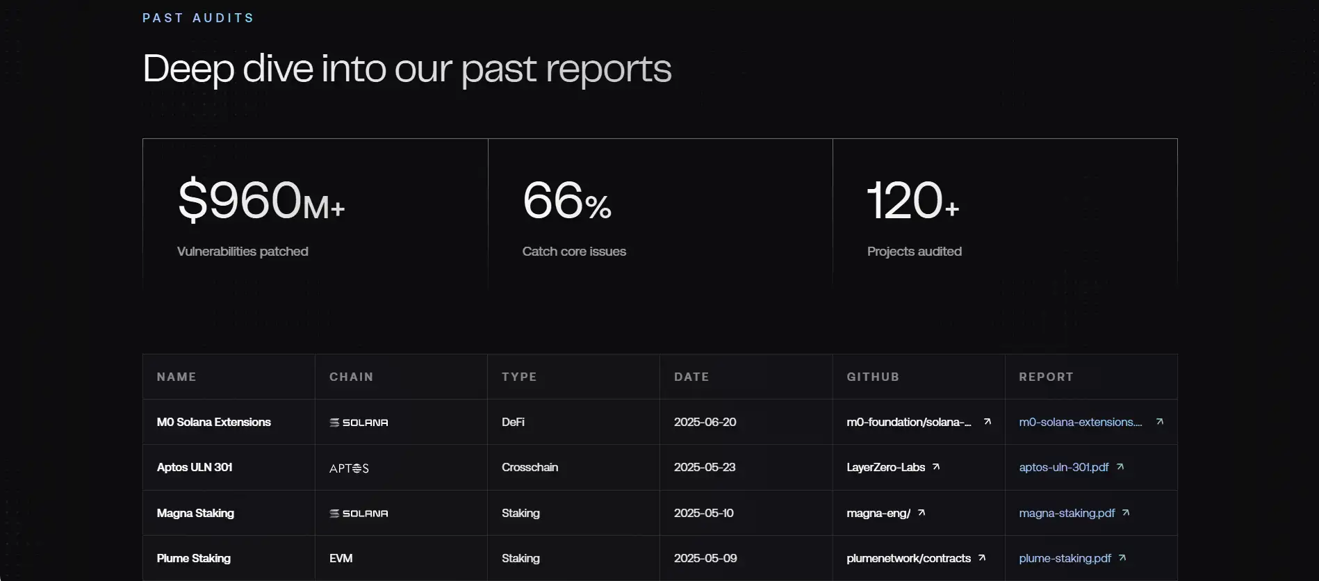 - Multichain Audit Expertise: Deep technical experience across Solana, EVM, Aptos, Sui, Cosmos, and Near.