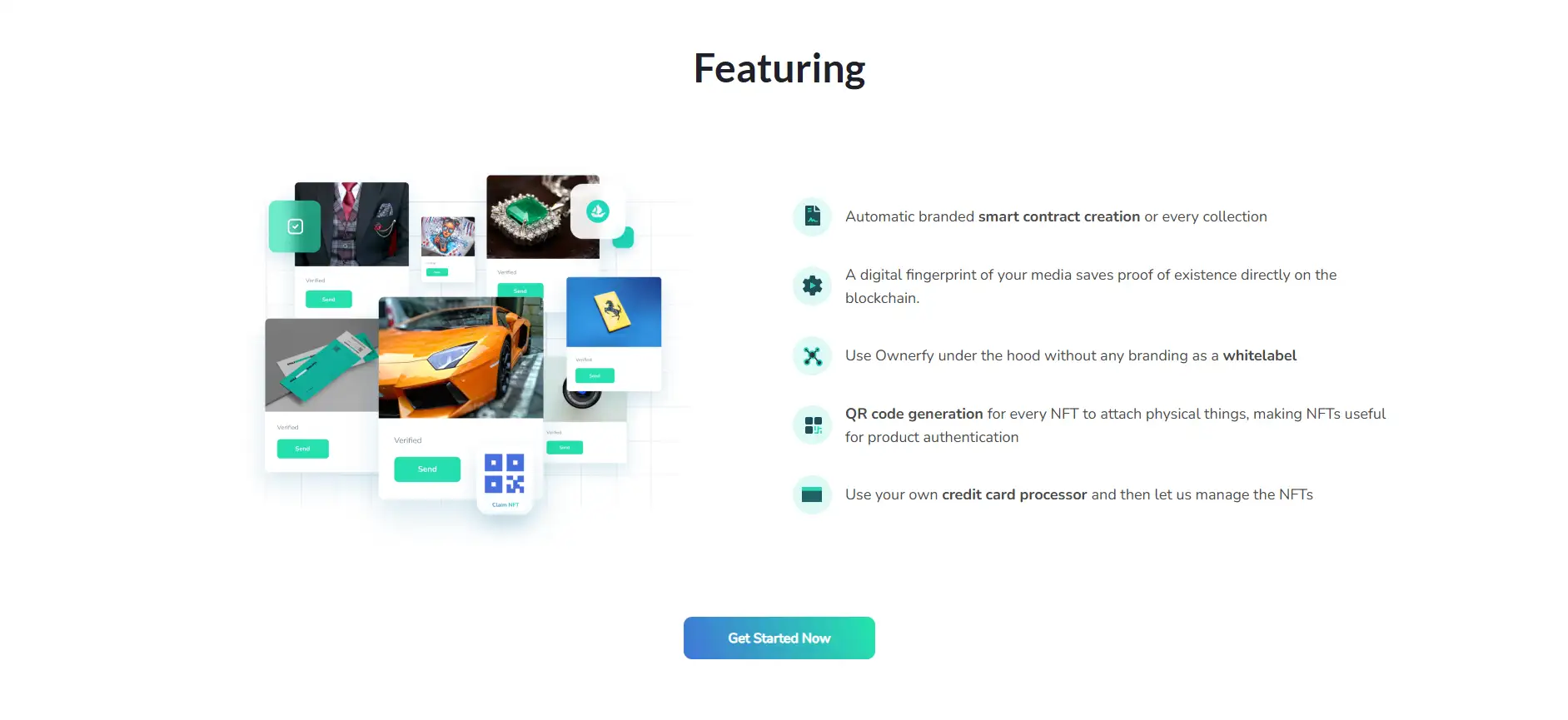 Ownerfy eliminates the need for purchasing or handling cryptocurrency by covering all gas fees and blockchain interactions on your behalf. Users can mint NFTs through the platform using their existing email login, and payments can be handled via traditional methods like credit cards. With built-in support for Polygon and enterprise-level Ethereum integrations, Ownerfy ensures you get all the benefits of blockchain without the complexity of crypto wallets or tokens.