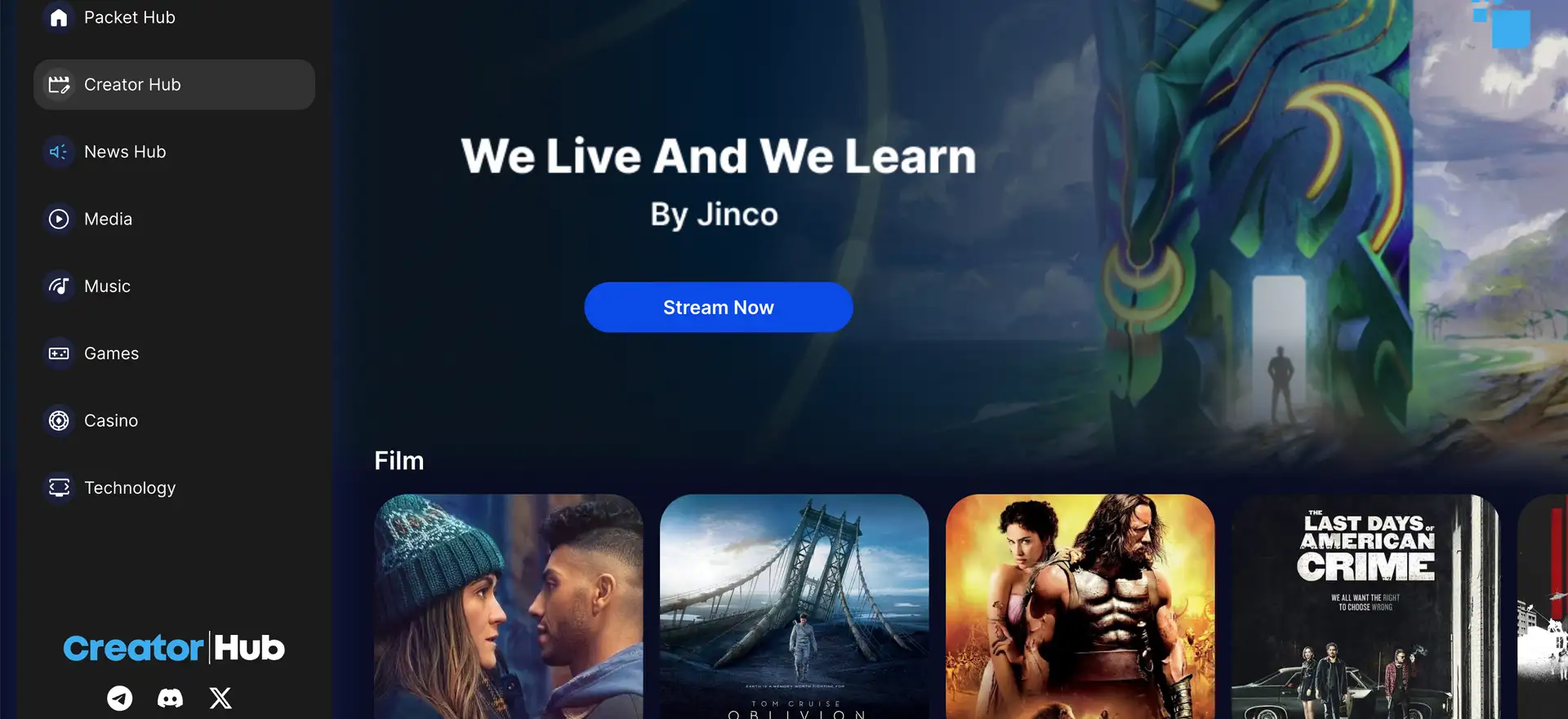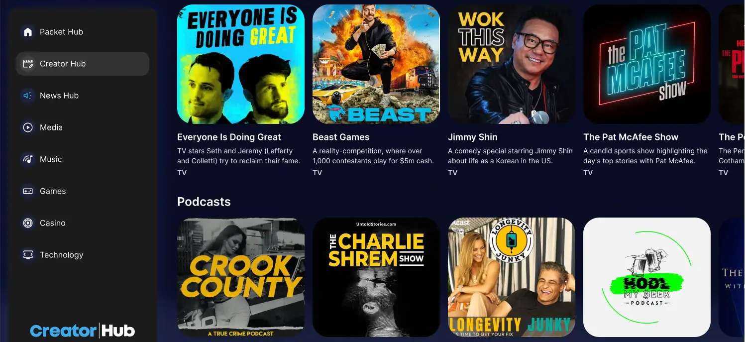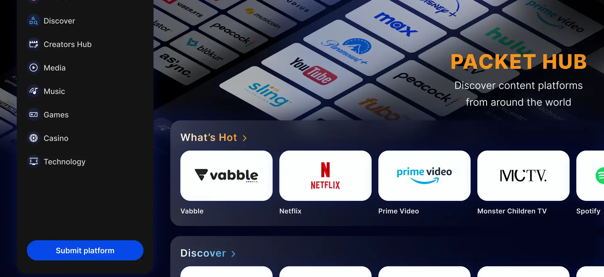 - Packet Hub Discovery: A decentralized platform showcasing content across media verticals with no geo-restrictions.