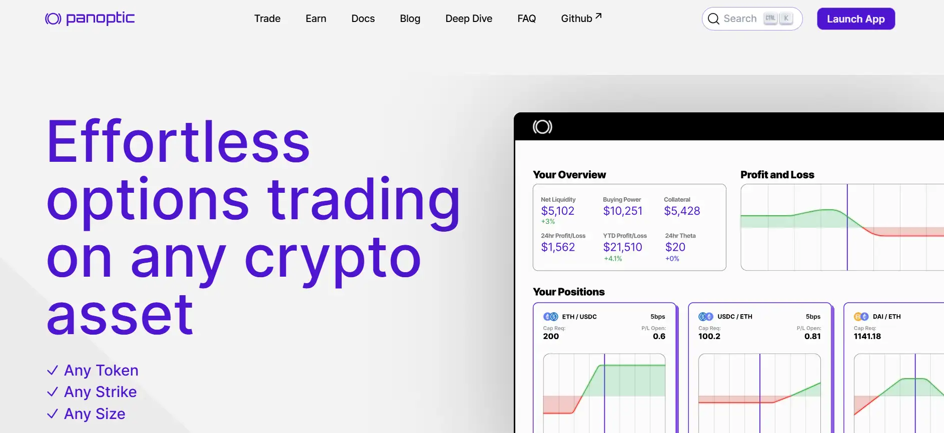 - Any Asset, Any Strike: Trade options permissionlessly on any ERC-20 token pair at any custom strike price.