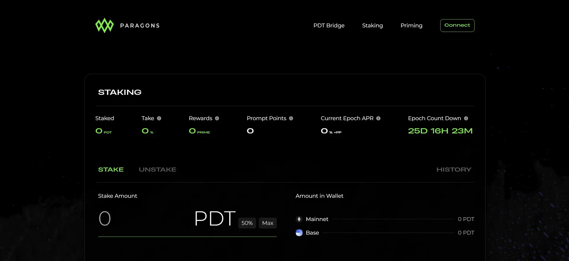 - Staking & Rewards: Players can stake PDT to earn game rewards in $PRIME and $PROMPT.