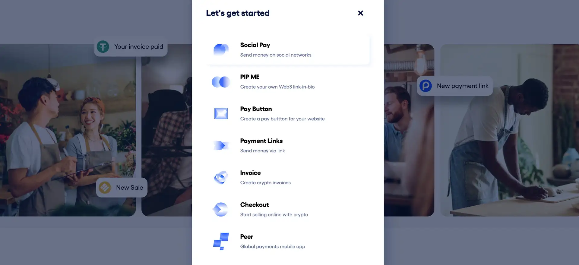 - Choose a Product: Select from various PIP products such as Social Pay, PIP ME, or Payment Links based on your needs.