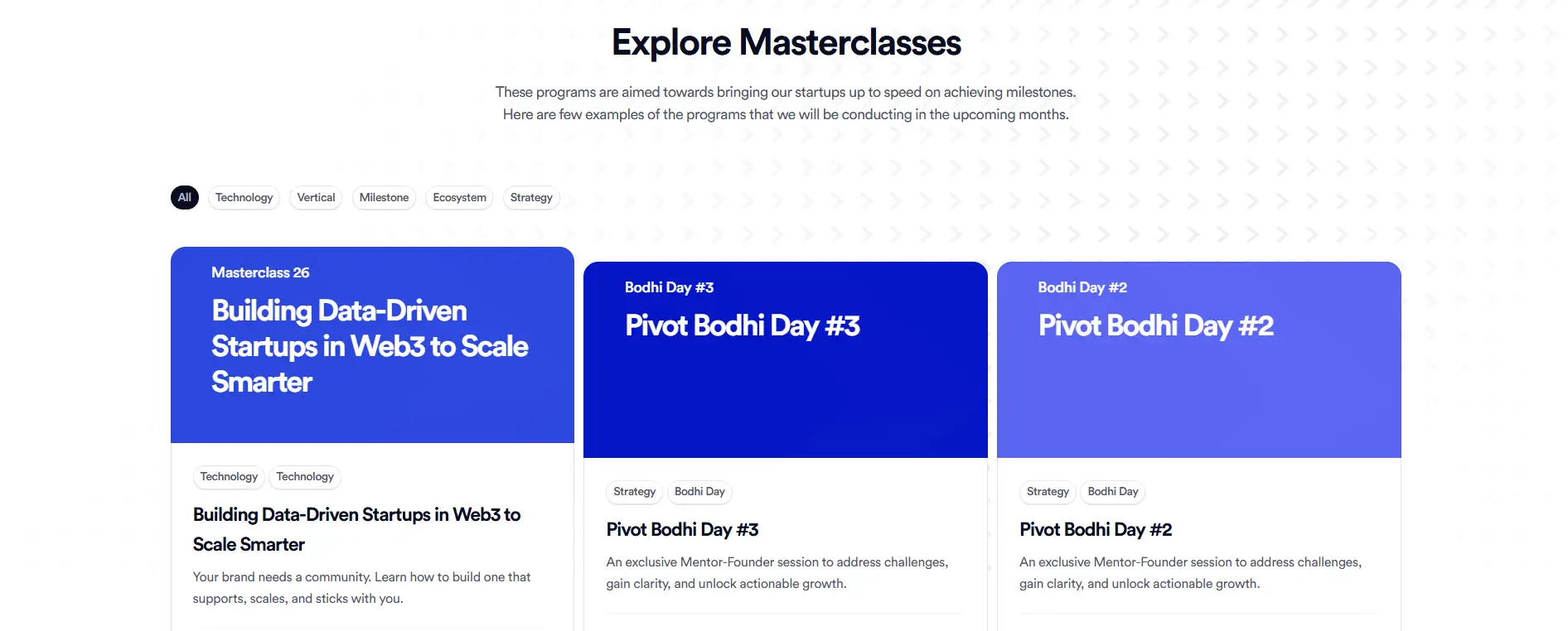 - Community-Building Events: Bodhi Days, Meetups, and Alumni Chapters promote collaboration, exposure, and real-time learning.