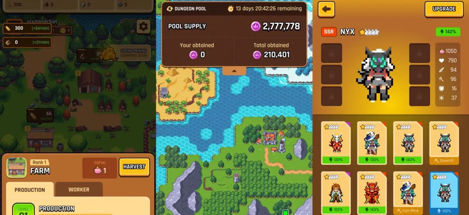 In terms of competitors, Pixiland shares thematic similarities with Illuvium (open-world RPG), Gods Unchained (card-battle gameplay), and Guild of Guardians (mobile strategy RPG). However, Pixiland’s unique blend of village simulation, auto-battler combat, pixel-art visuals, and its Telegram-native gameplay makes it a distinctive offering in the Web3 gaming space.
