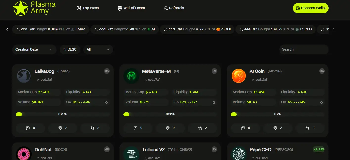 Plasma Army combines bonding curve mechanics with community-driven missions, delivering a fair, transparent, and hype-fueled environment for every token launch. Every recruit, creator, and meme warrior contributes to a thriving ecosystem where innovation meets virality.