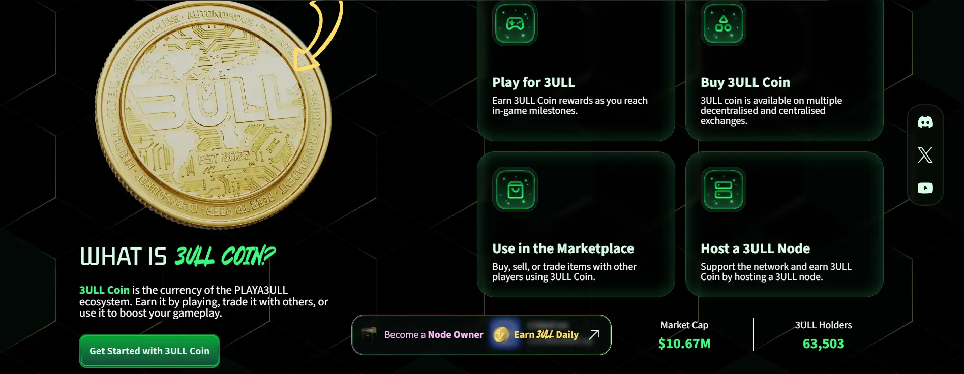 From the strategic depth of ORDINEM (a PvP trading card game) to the fast-paced intensity of NEXUS (a MOBA-style arena shooter), each title introduces unique mechanics and economic models. The project's ambitious scope also includes WAR OF STEEL (a mech battle royale), DOGS OF WAR (a survival PvPvE experience), and STARVIN MARTIAN (a farming/simulation game set on Mars). These games not only entertain but reward players through a robust Play-and-Earn model driven by $3ULL tokens and NFTs.