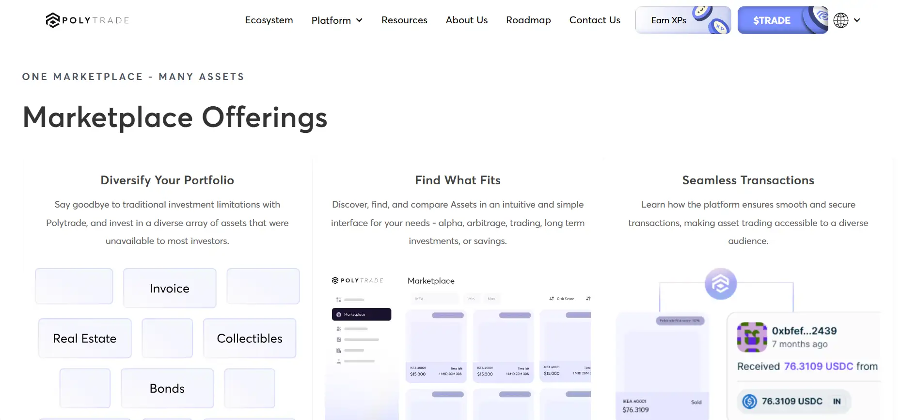 The Polytrade Marketplace aggregates a vast array of tokenized assets, enabling users to access credit pools, real estate, treasuries, equities, structured credit, collectibles, and more, all from a unified platform. Users can discover assets through partnerships with leading protocols like Uniswap, Balancer, and OpenSea, or trade native secondary assets utilizing the ERC-6960 standard. Unlike traditional markets, Polytrade breathes life into illiquid assets by offering a secondary sales marketplace and introducing liquidity to assets once restricted to niche investors.