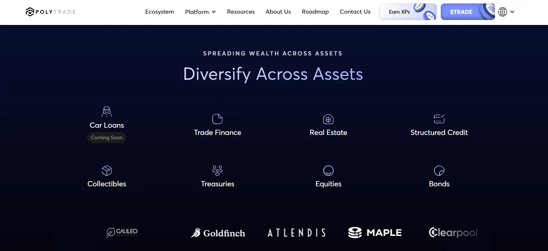 Competitors in the RWA and asset tokenization space include Centrifuge, Goldfinch, and Maple Finance. However, Polytrade differentiates itself through multi-chain interoperability, fractional ownership capabilities, seamless UI/UX, and an expansive asset offering. By integrating an XP-based loyalty system, Polytrade further enhances user engagement, rewarding participants with incentives like airdrops and early access to exclusive asset sales.