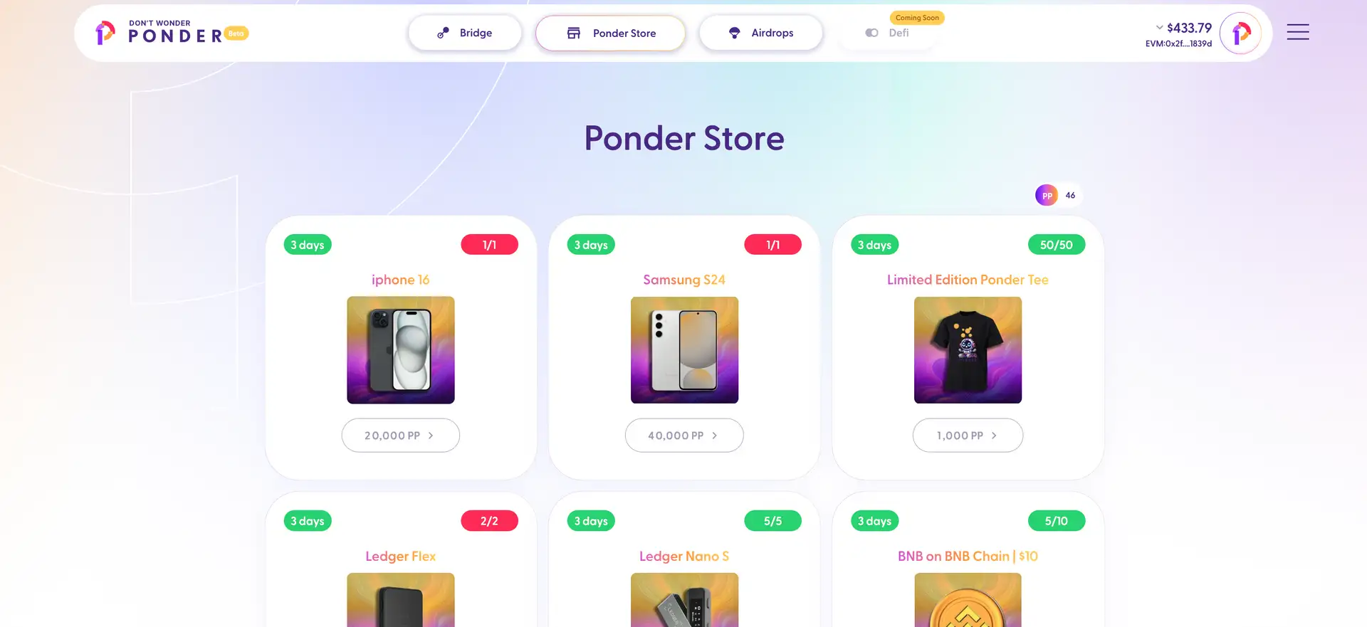 Initially focused on bridging and swapping, Ponder has since expanded into multiple verticals. Users can now explore EigenLayer restaking, DePIN protocols, RWA markets, borrow/lend options, memecoins, fiat ramps, and even NFT or Ordinals aggregators—all from a unified interface. This makes it an essential tool not just for DeFi veterans, but also for newcomers who want high-value interactions with minimal friction.