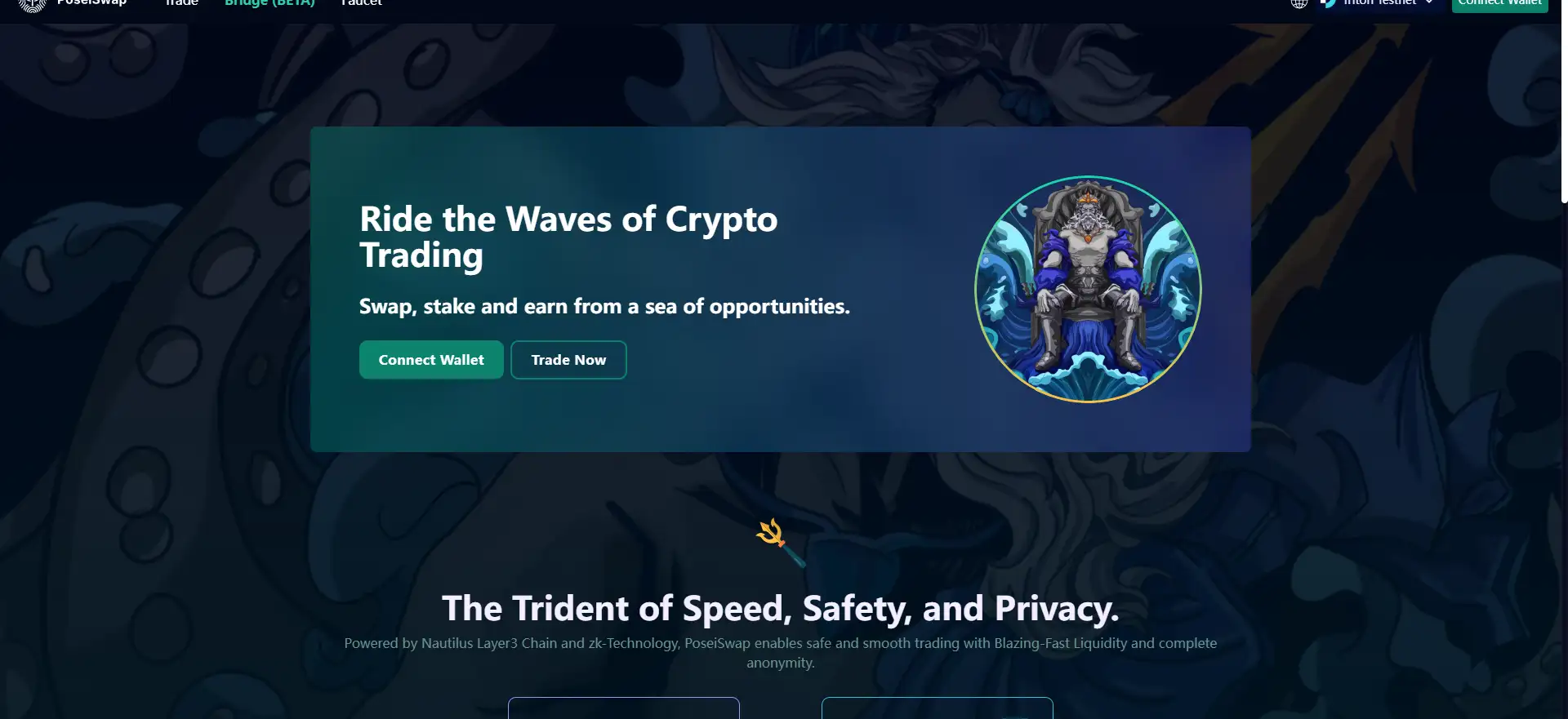 PoseiSwap is the very 1st Dex on the Nautilus Chain, built to provide the best trading and liquidity provision experience.