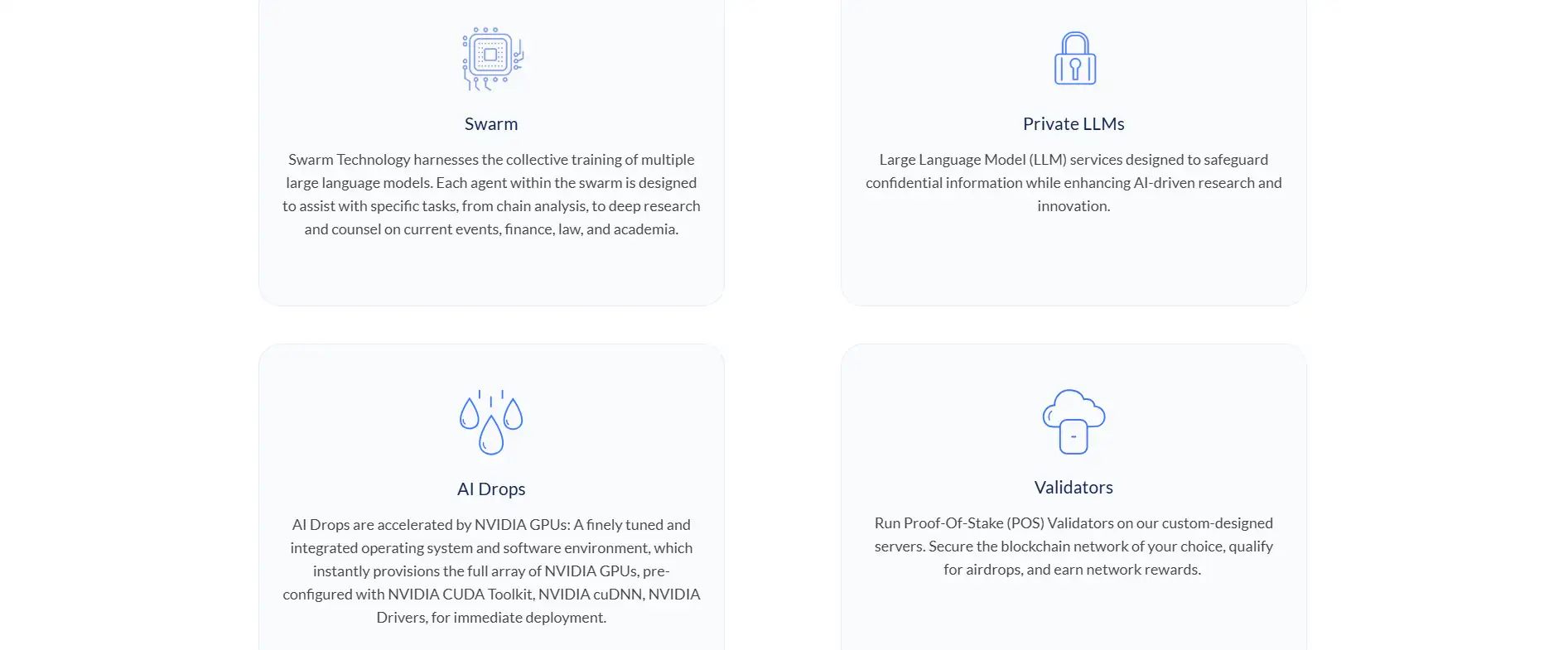 - Start Building: Use the AI tools (Swarm, Private LLMs) or launch validator nodes and start contributing to blockchain networks.