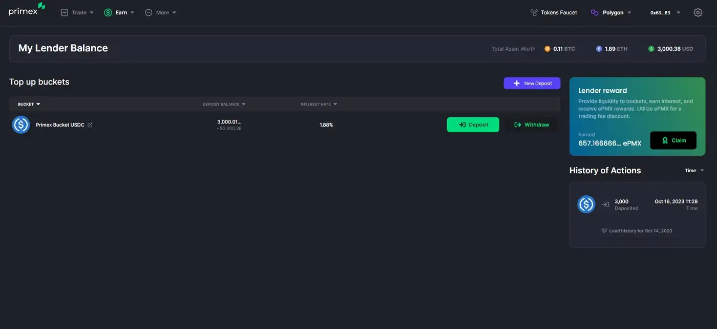 - Start Trading or Lending and Advance Your Earnings: Begin by utilizing the leverage options available to start trading, or choose a suitable Bucket to lend your assets and earn interest. To further increase your points and enhance your chances of earning ePMX, engage in advanced quests via: https://app.primex.finance/?utm_source=MagicStore