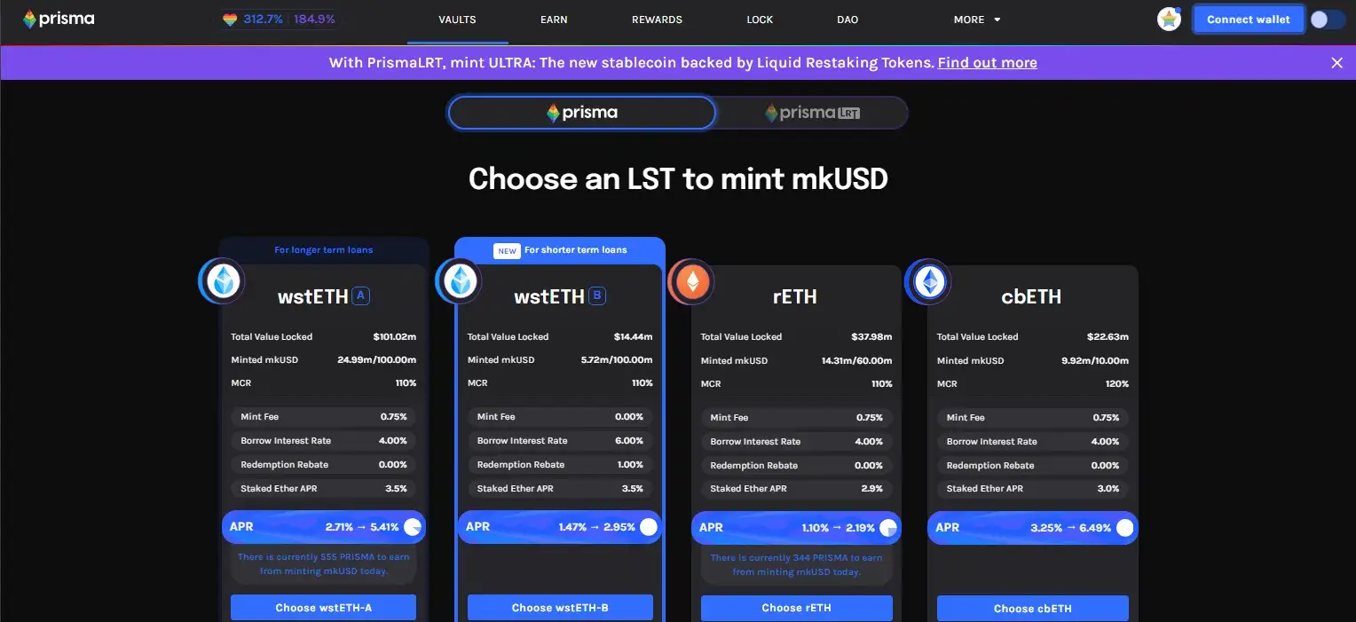 - Acquire Liquid Staking Tokens (LSTs): Obtain LSTs such as wstETH or sfrxETH from platforms like Lido or Rocket Pool, which you will use as collateral within the Prisma Finance protocol.