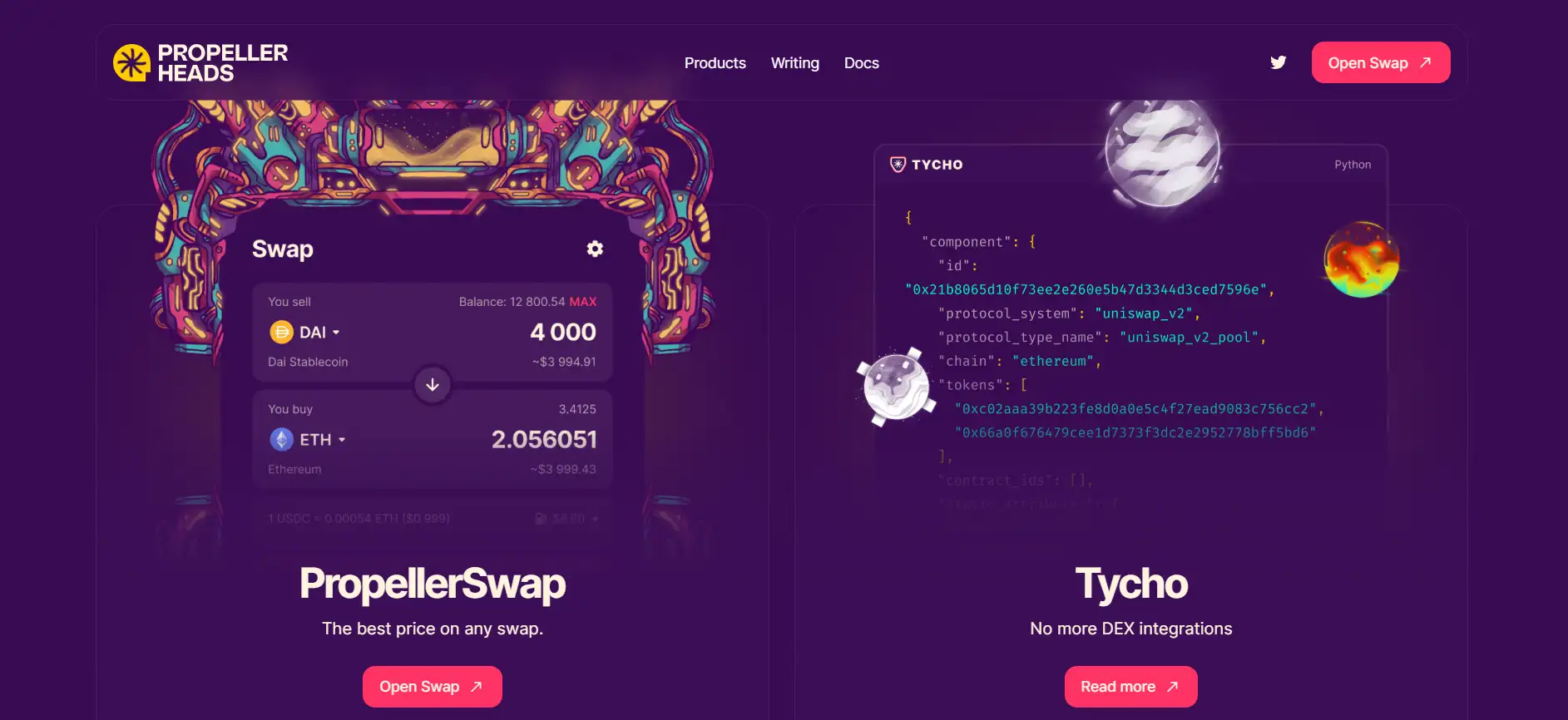 PropellerHeads is a next-generation Web3 infrastructure provider that simplifies the way developers interact with blockchain networks. By leveraging Tycho, a powerful composability framework, the project allows developers to build modular execution environments that enhance blockchain efficiency and interoperability.
